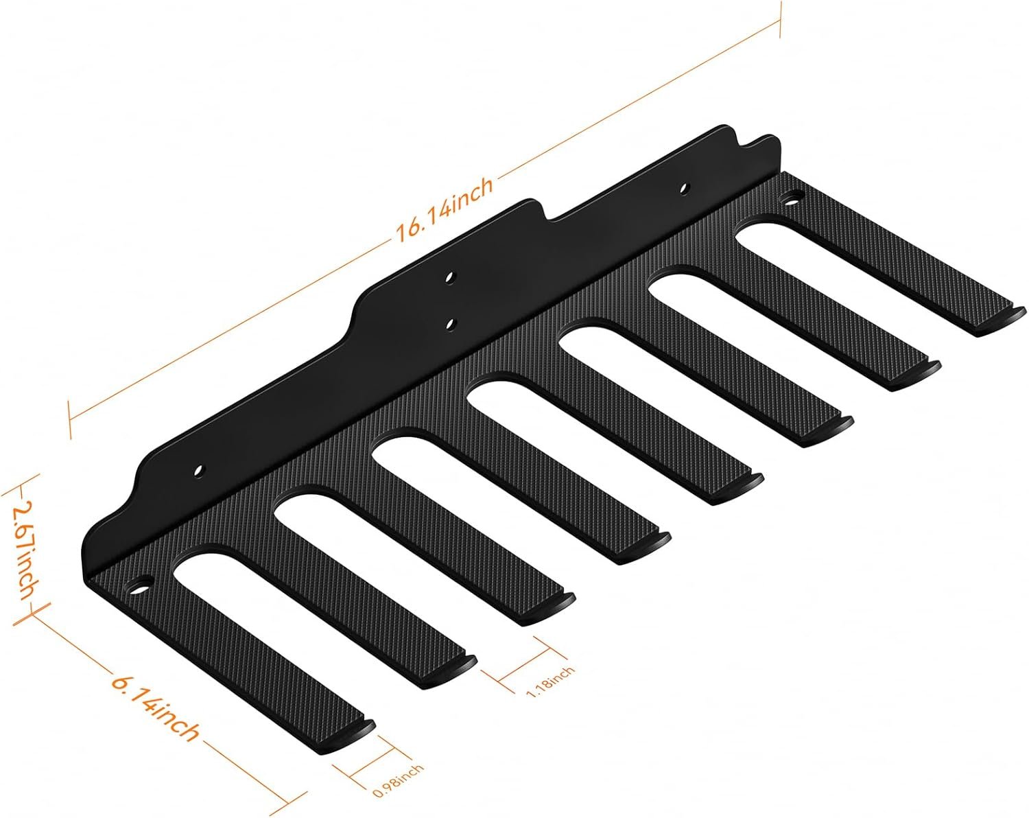 Sturdy & Durable – The heavy-duty wall-mounted organizer is made of high quality steel plate. Then there is a thick, durable, coarse powder coating on the surface. All the fingers/combs are spaced apart to avoid overlapping, thus protecting your equipment and shelves from scratches