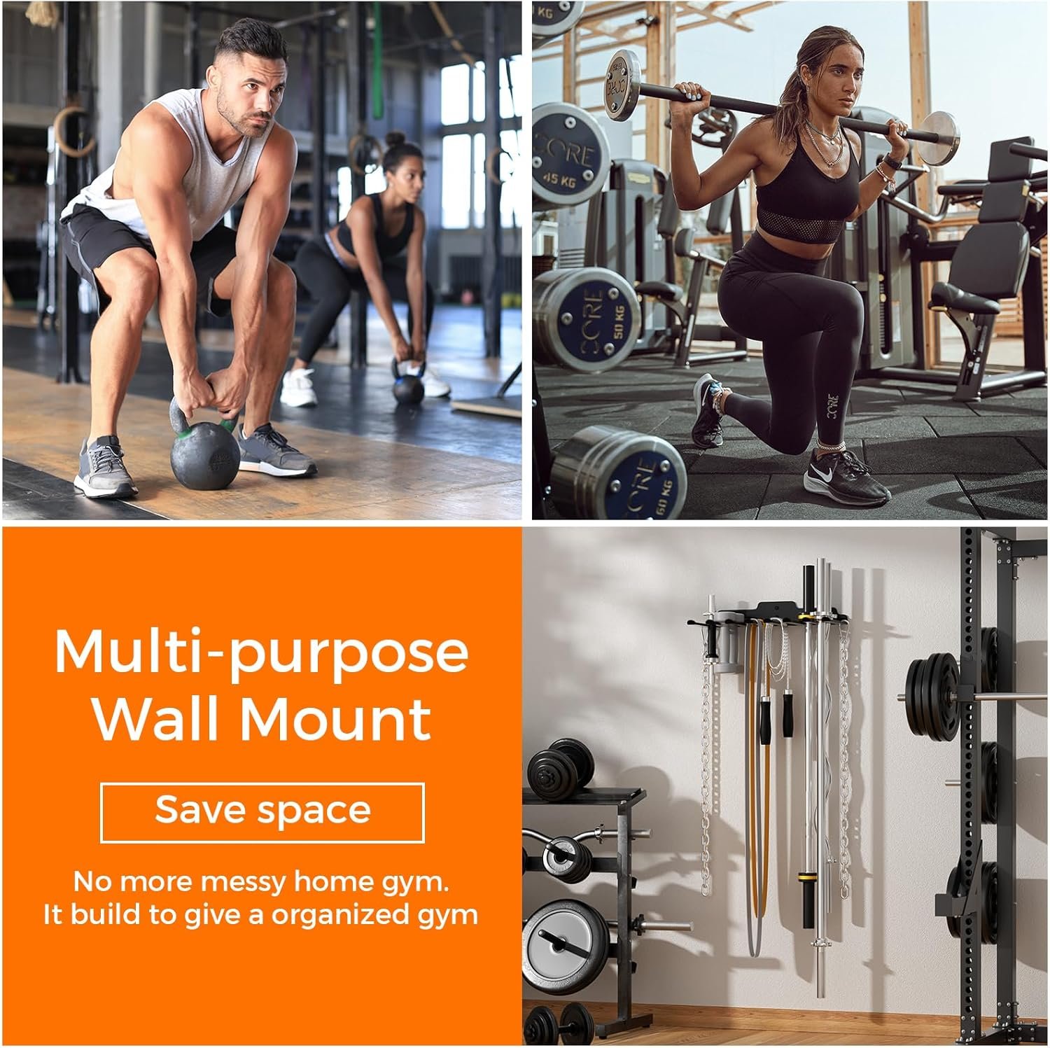 Protective Pad Designed – The Gym Home Rack Wall-mounted Organizer(Package includes 2 carabiners) is sprayed with a matte matte anti-rust layer and comes with a rubber pad to protect your barbell coating.The surface is smooth and durable against rust.Provides good care for your steel bars, and you can use them for a long time