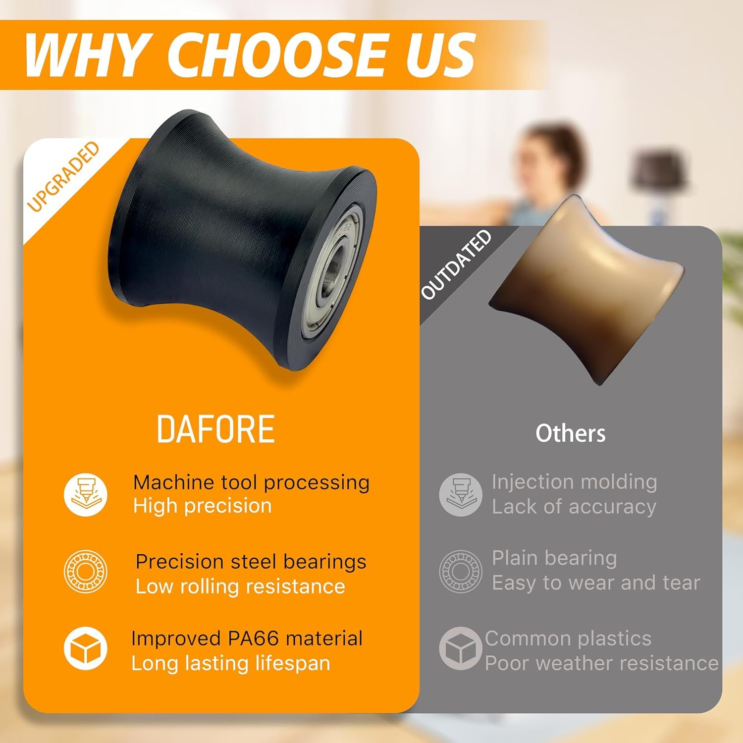 Solve the problems:If there is noise or poor sliding in the total trainer machine,We need to replace the wheel roller component of the parts,and the same applies to Pilates Trainer,Upgrade wheel rollers are more durable,quieter,and smoother to meet high-intensity exercise needs