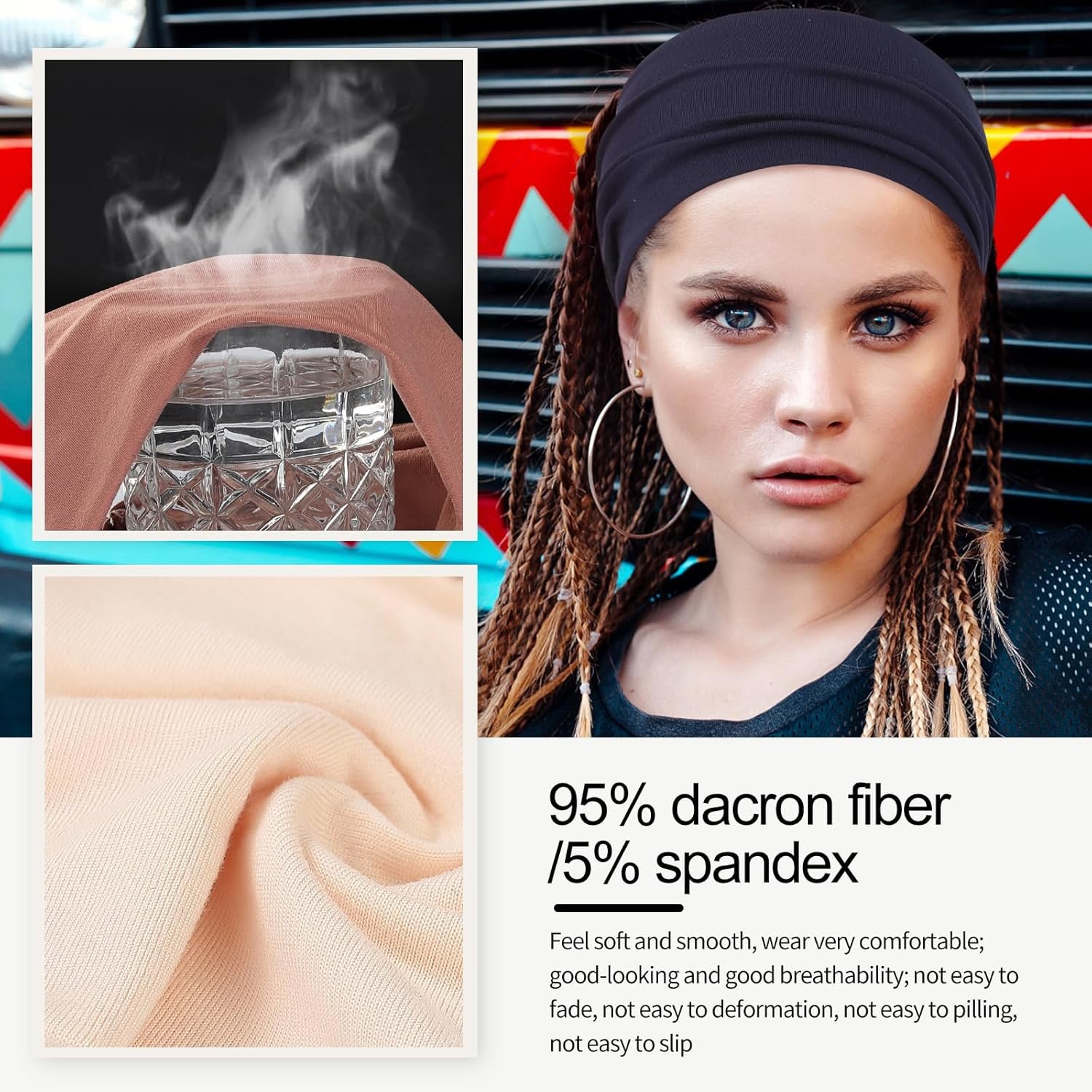 【Premium Material】The material for these women headbands is 95% dacron fiber and 5% spandex. Feel soft and smooth, wear very comfortable; good-looking and good breathability; not easy to fade, not easy to deformation, not easy to pilling, not easy to slip.