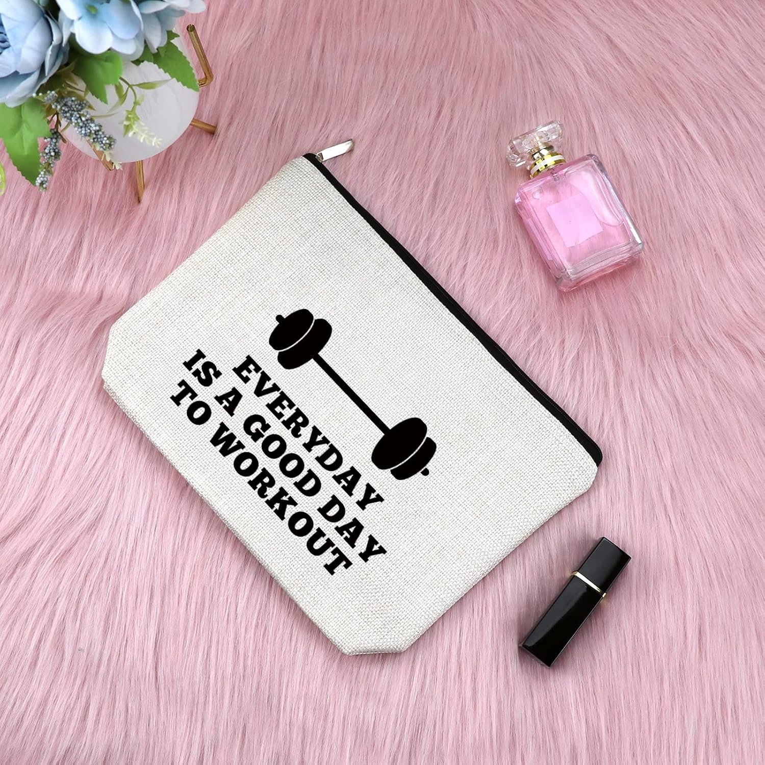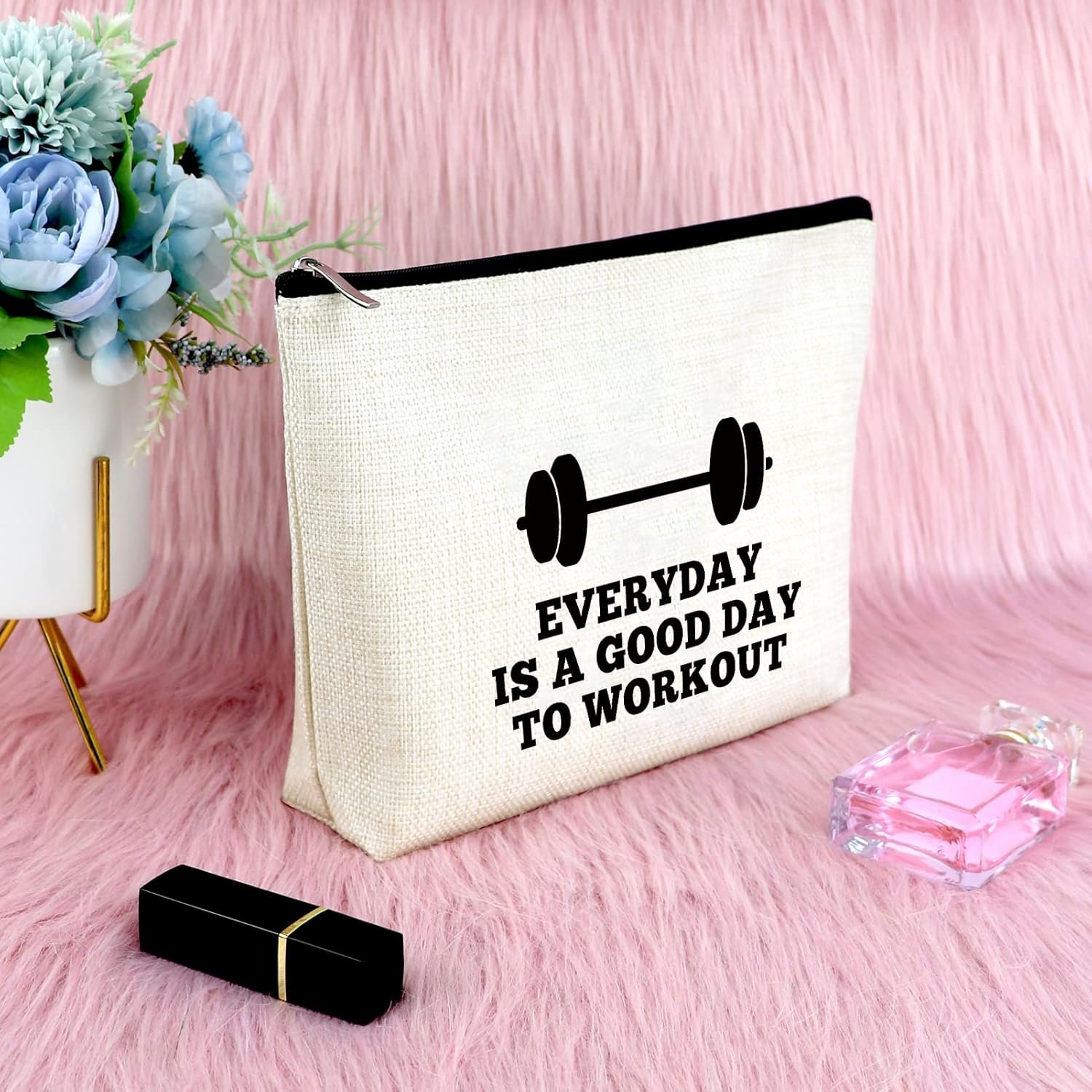 Workout Gift for Women: The makeup bag printed with inspirational message “Everyday is A Good Day To Workout”. Perfect gift for family, friends, sister, mom, aunt, daughter, colleague, classmate, granddaughter, wife, girlfriend. This bodybuilding makeup bag gift is inspiration to help you stay motivated for building muscle, getting fit and achieving you bodybuilding goals!