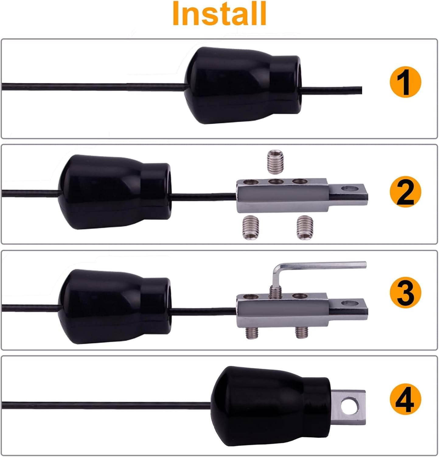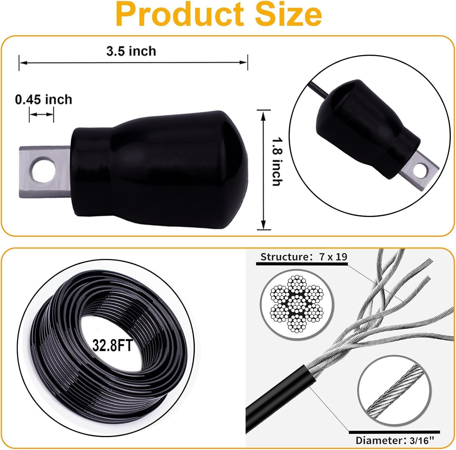 Package included:32.8 Ft of high-quality steel cable, two cable ball stopper ends, two metal terminal core, six bolts, and an Allen wrench.