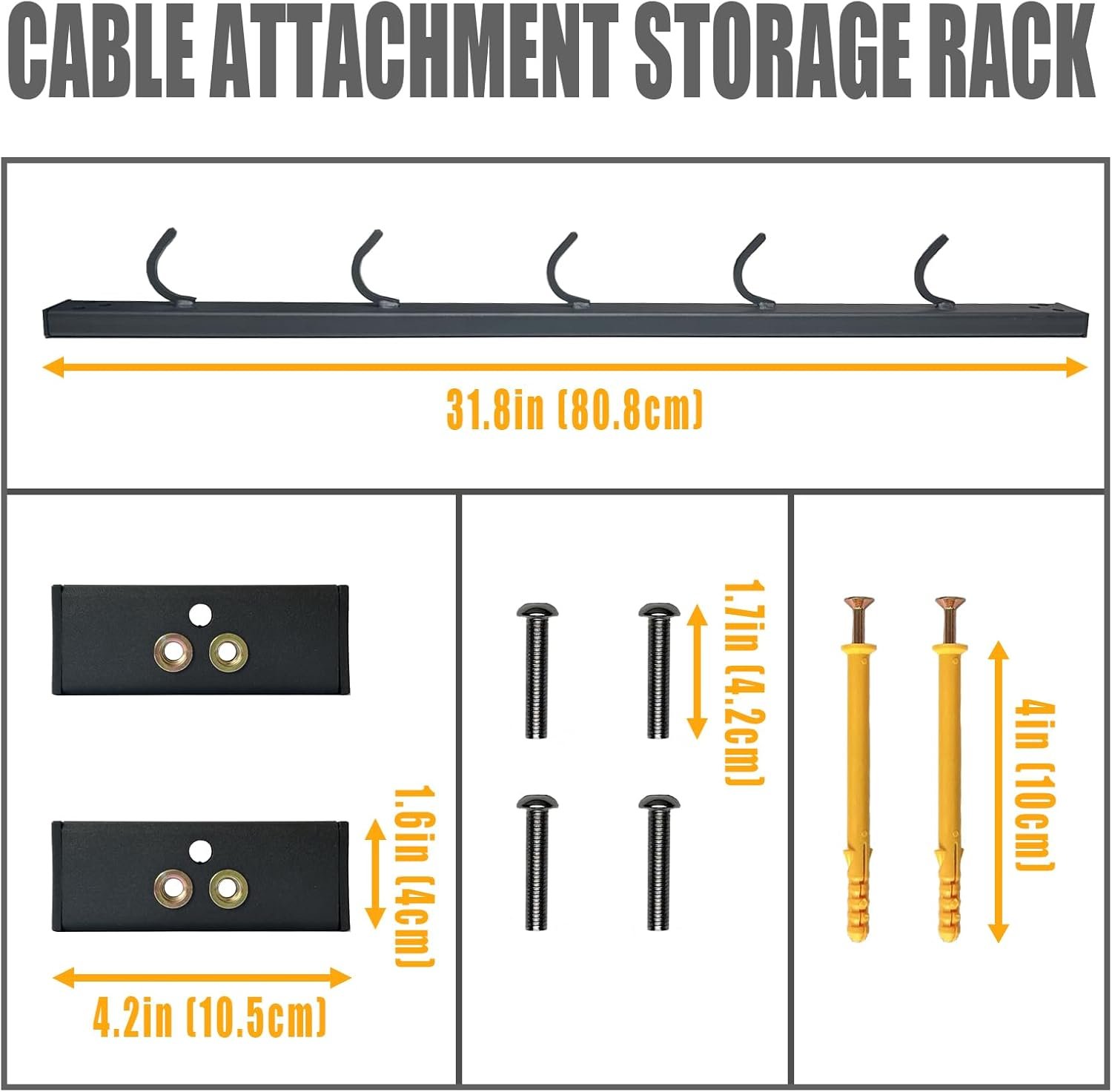 Multi-use Storage Rack: This lat pull down bar organizer can provide a superb organization for cable machine attachments or accessories, which can store various of resistance bands, lat bars, fitness attachments and other gym accessories