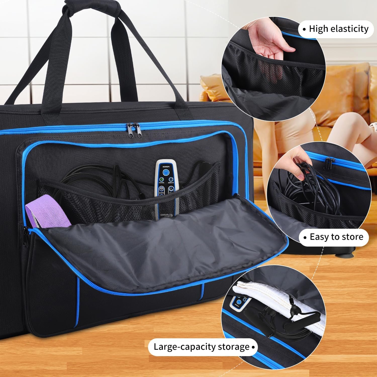 Large-capacity Storage:Vibrating Plate Exercise Machine Carrying Bag has a main pocket to store machine,and front pocket with elastic mesh pocket for storing other accessories