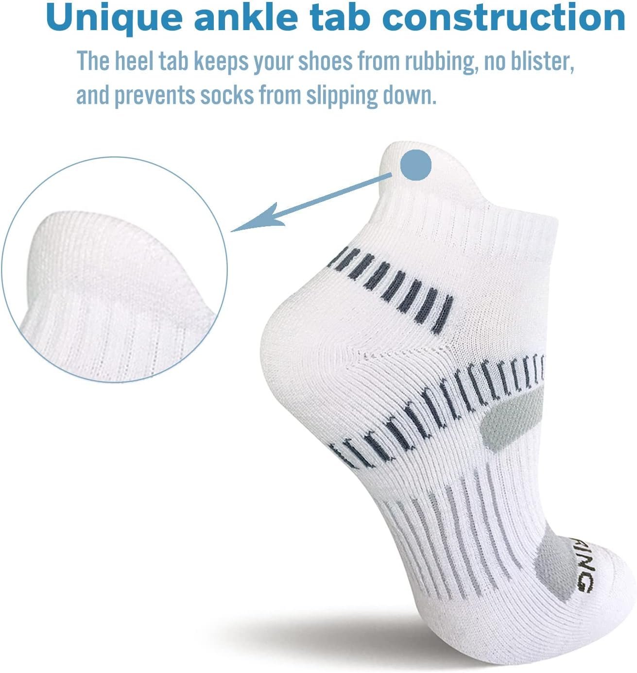 A stretch support band in the middle of the arch keeps the sock in place and enhances stability, reducing foot fatigue to help improve endurance and performance.