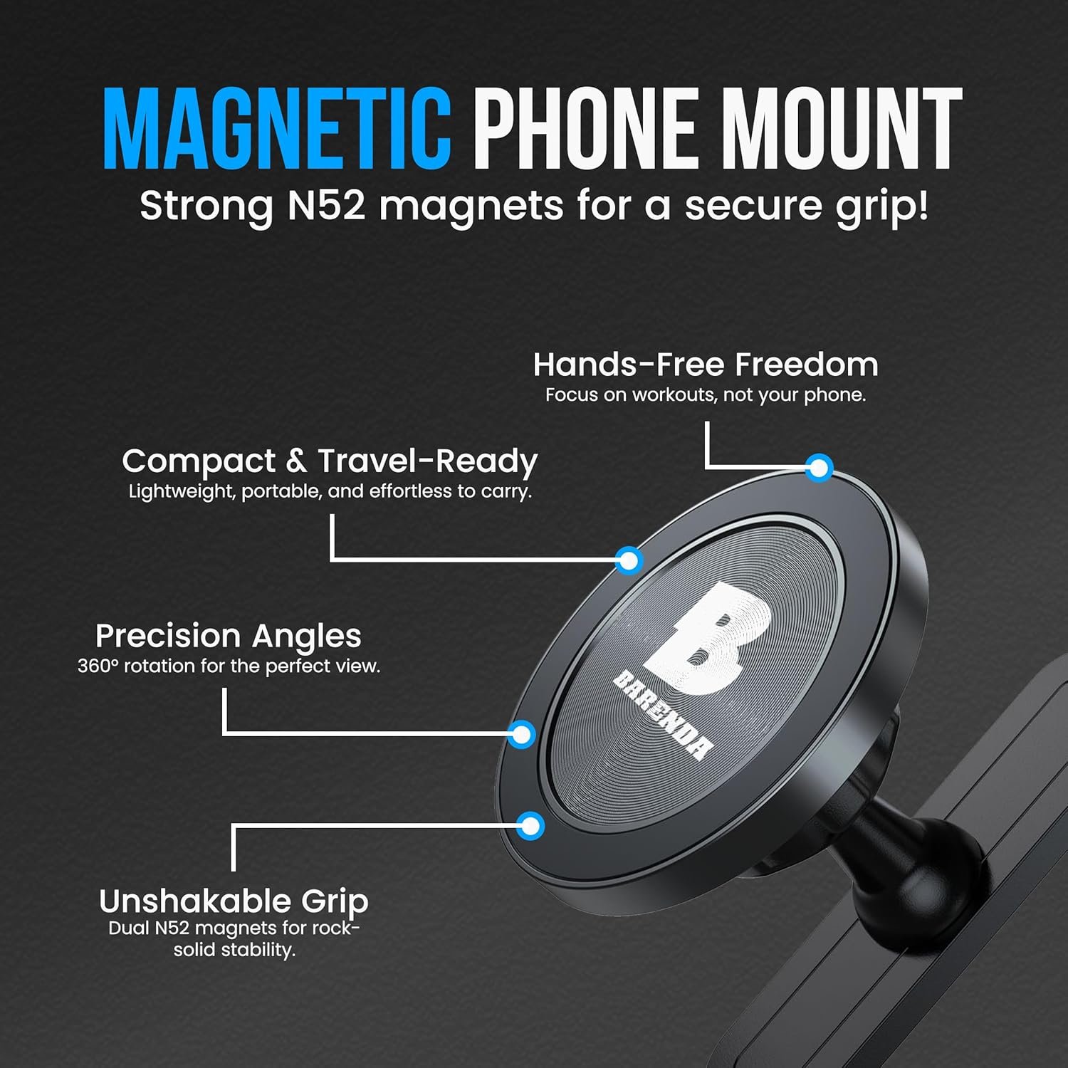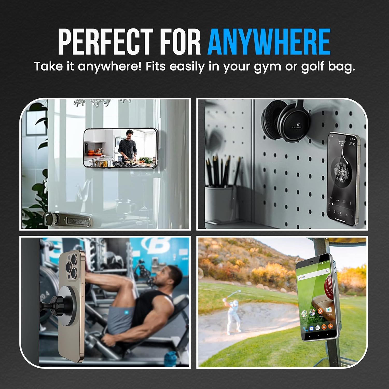 ON-THE-GO STABILITY: Lightweight and easy to carry, this magnetic phone mount for gym is perfect for gyms, golf carts, and outdoor activities. Whether you’re recording your workout or navigating on the go, it keeps your phone secure and accessible