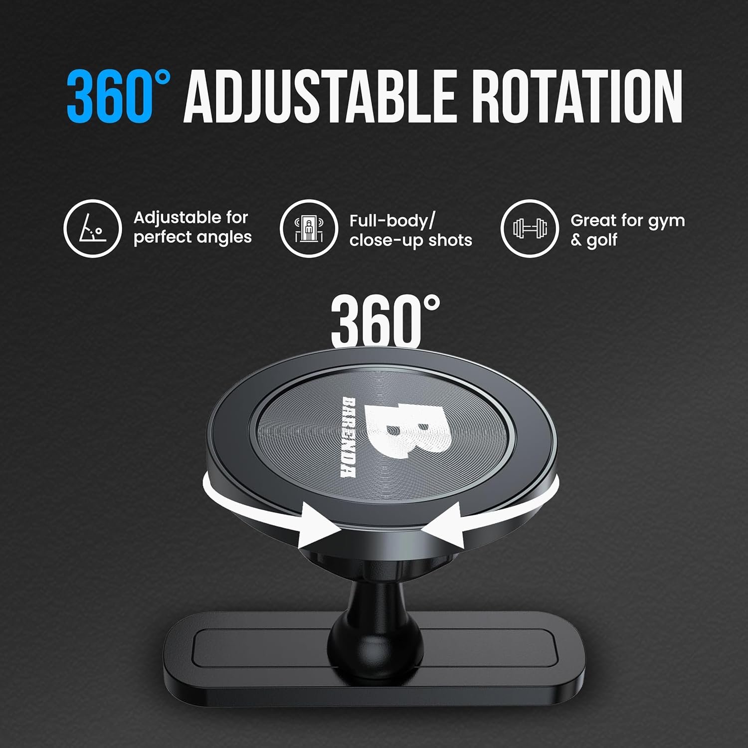 ROTATABLE FOR PERFECT ANGLES: Easily adjust your phone to capture the ideal shot with the gym phone mount’s 360° rotation. Whether you need a full-body view or a close-up of your form, this mount lets you position your phone exactly how you want, ensuring the best angles
