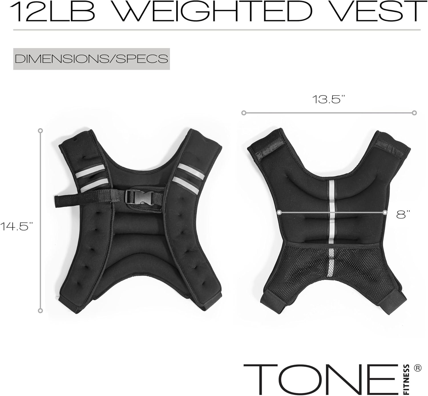 The Tone Fitness 8 lb weighted vest adds that extra resistance needed to take your workouts to the next level. The vest is constructed with soft neoprene fabric that is stretchy and provides a comfortable feel. The weight is evenly distributed across the front and back for added comfort and to add resistance to the center of the body without compromising other body parts. This vest features adjustable straps, so you can find the right fit for your needs. The Tone Fitness 8lb Weighted Vest also features multiple reflective strips, so you can safely train during dark hours. This is a one-size-fits-most vest, simply adjust the two side straps to find your perfect fit. Adding resistance to your workout will increase your agility and help you burn more calories. Train harder and increase your strength with this weighted vest.