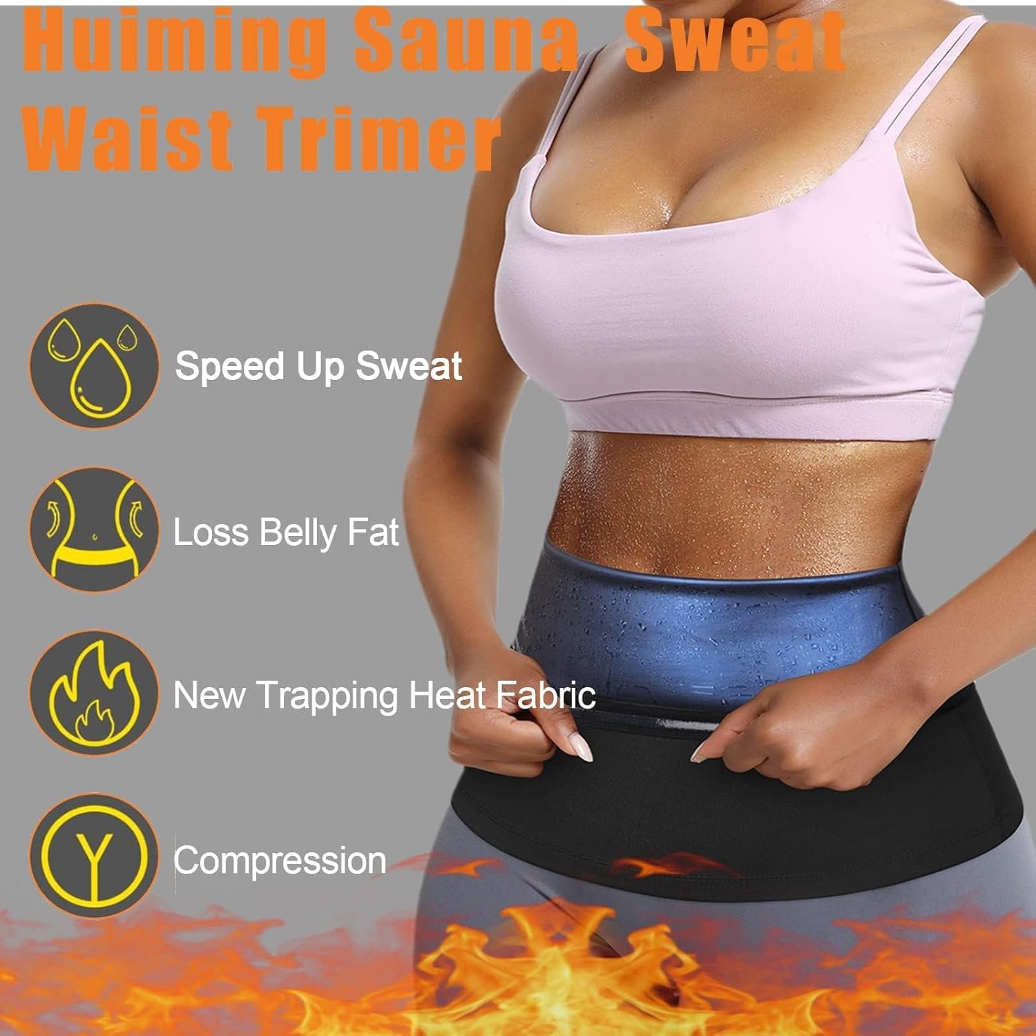 6 TIMES SWEAT WAIST TRIMMER: proprietary blend of fabrics has been carefully selected,OUTSIDE: 95% Polyester & 5% Spandex, INSIDE: 100% Polyurethane , which can increase temperature and 6 TIMES sweat as a hot sauna-like experience, resulting in faster moisture loss during sport and daily;It will to makes you show the curve.