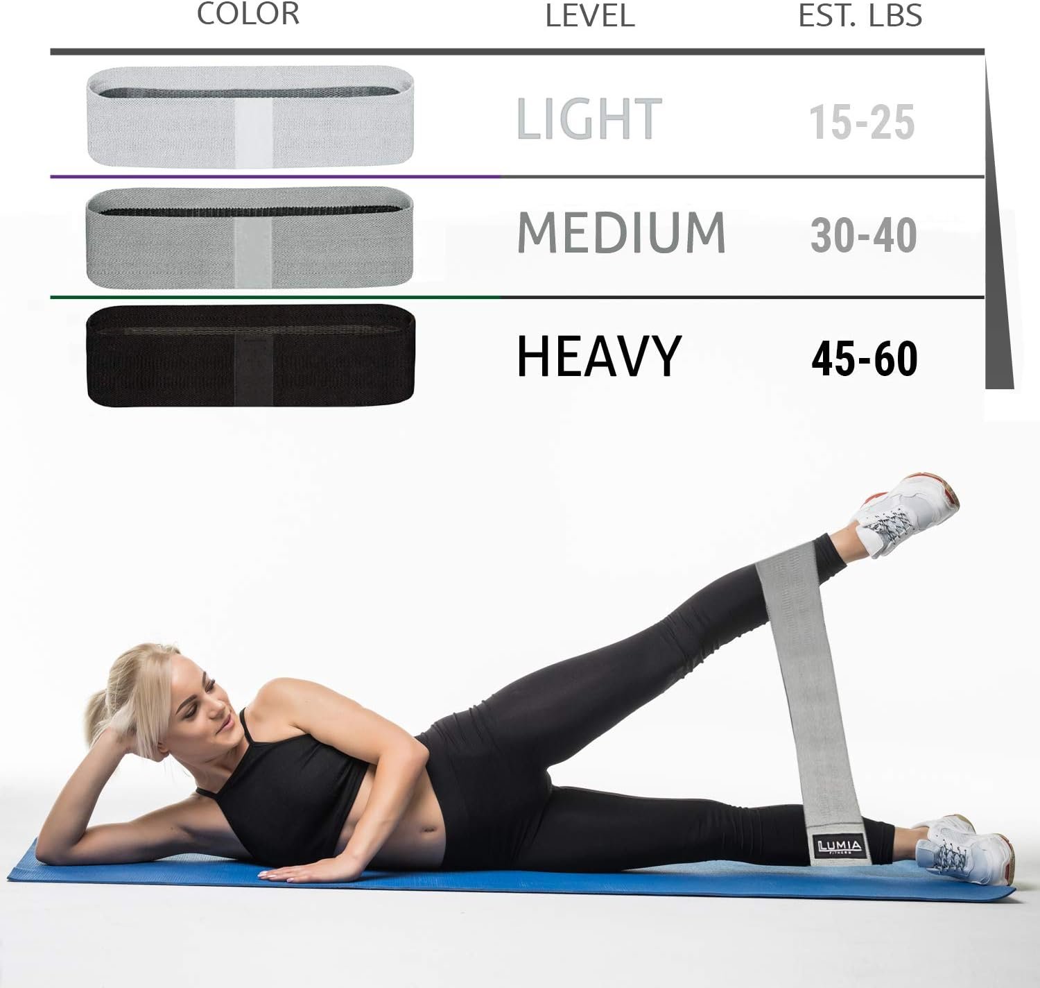 Heavy duty fabric booty band for women are non slip and provide excellent resistance. These booty bands resistance bands allow for additional glute isolation exercises.