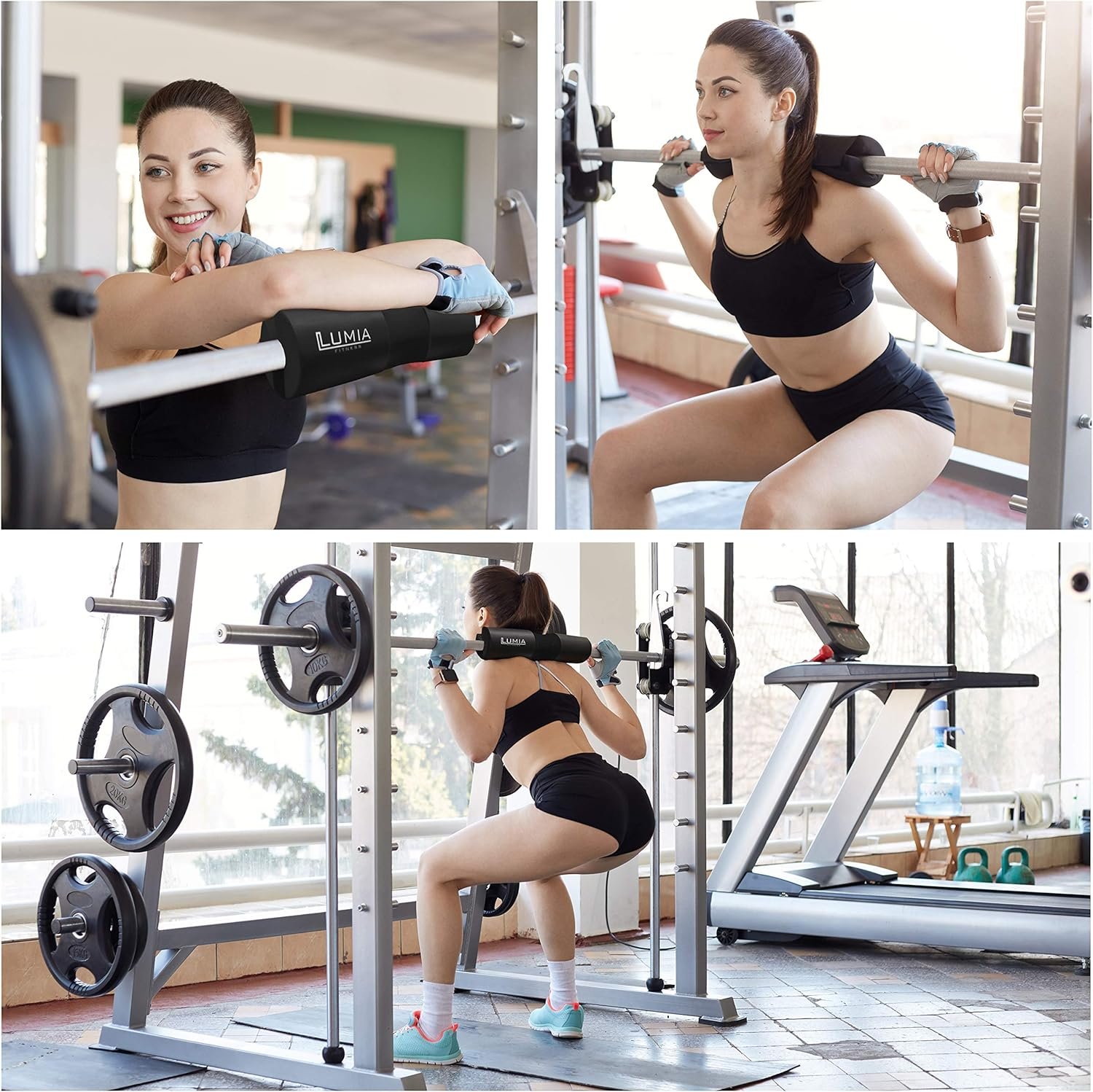 Thick olympic barbell squat pad provides maximum comfort when doing squats or weighted glute bridges. This hip thruster pad works wonders! The perfect gift set gym accessories for women!