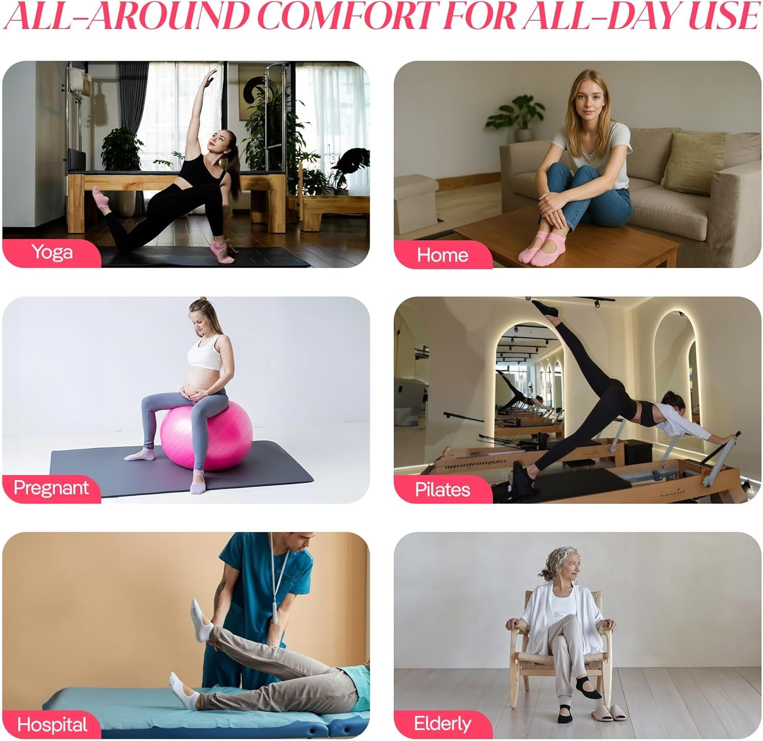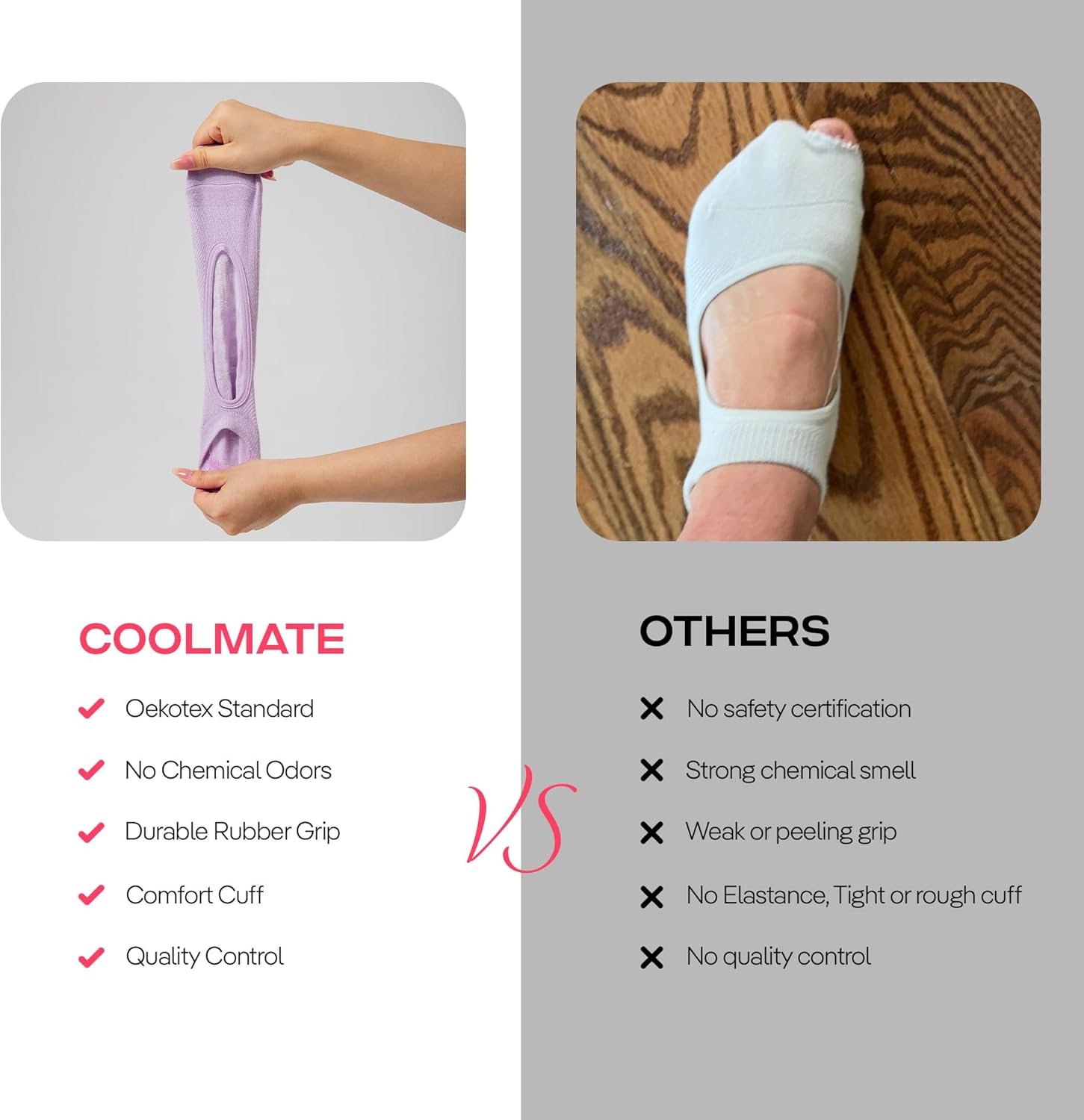 Experience the ultimate combination of comfort, style, and performance with COOLMATE Pilates Socks with Grips for Women. Perfect for Pilates, yoga, barre, and at-home workouts, these socks are crafted to keep your feet supported and secure. Made with a premium blend of 50% polyester, 42% cotton, 5% nylon, 3% elastane, they provide a cozy, breathable, and durable fit to enhance every session. Key Features: High-Quality Cotton Blend by COOLMATE: Featuring 42% cotton for breathability and softness, with added stretch and durability from polyester and spandex, these socks deliver unmatched comfort and longevity. Non-Slip Grip Design: Strong silicone grips on the soles provide excellent traction, ensuring stability and balance during yoga, Pilates, and barre workouts. Say goodbye to slips and focus on your practice! Arch Support & Secure Fit: The elastic cuff and non-slip arch support keep your socks snug and in place, providing extra comfort during long sessions. Stylish & Versatile: These low-cut, yoga grip socks for women come in a variety of colors, making them a fashionable choice for lounging, workouts, or dance. Perfect Gift for Active Women: This 4-pair set by COOLMATE is a thoughtful gift for fitness enthusiasts, ideal for birthdays, holidays, or as a stocking stuffer for anyone who loves stylish and functional accessories. Choose COOLMATE Pilates Workout Socks for Women for premium quality, ultimate grip, and cozy comfort. Whether you’re hitting the studio or relaxing at home, these socks are designed to elevate your experience. Embrace style, stability, and performance with COOLMATE!