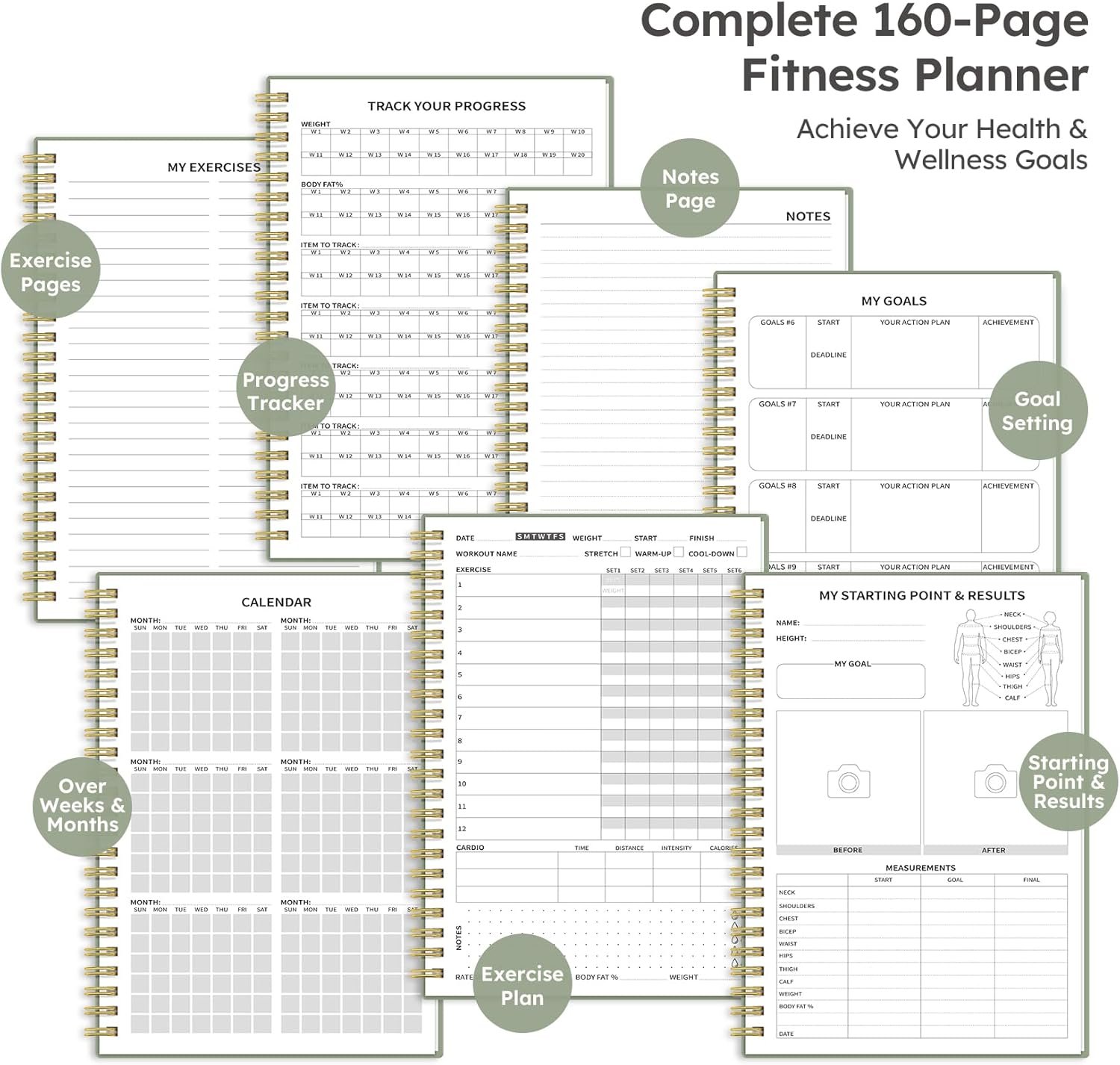 Set and Achieve Goals – Set up to 10 fitness goals and track your progress towards them. This workout log provides space to note your goals and track your performance, enabling you to stay motivated and focused on your fitness journey.