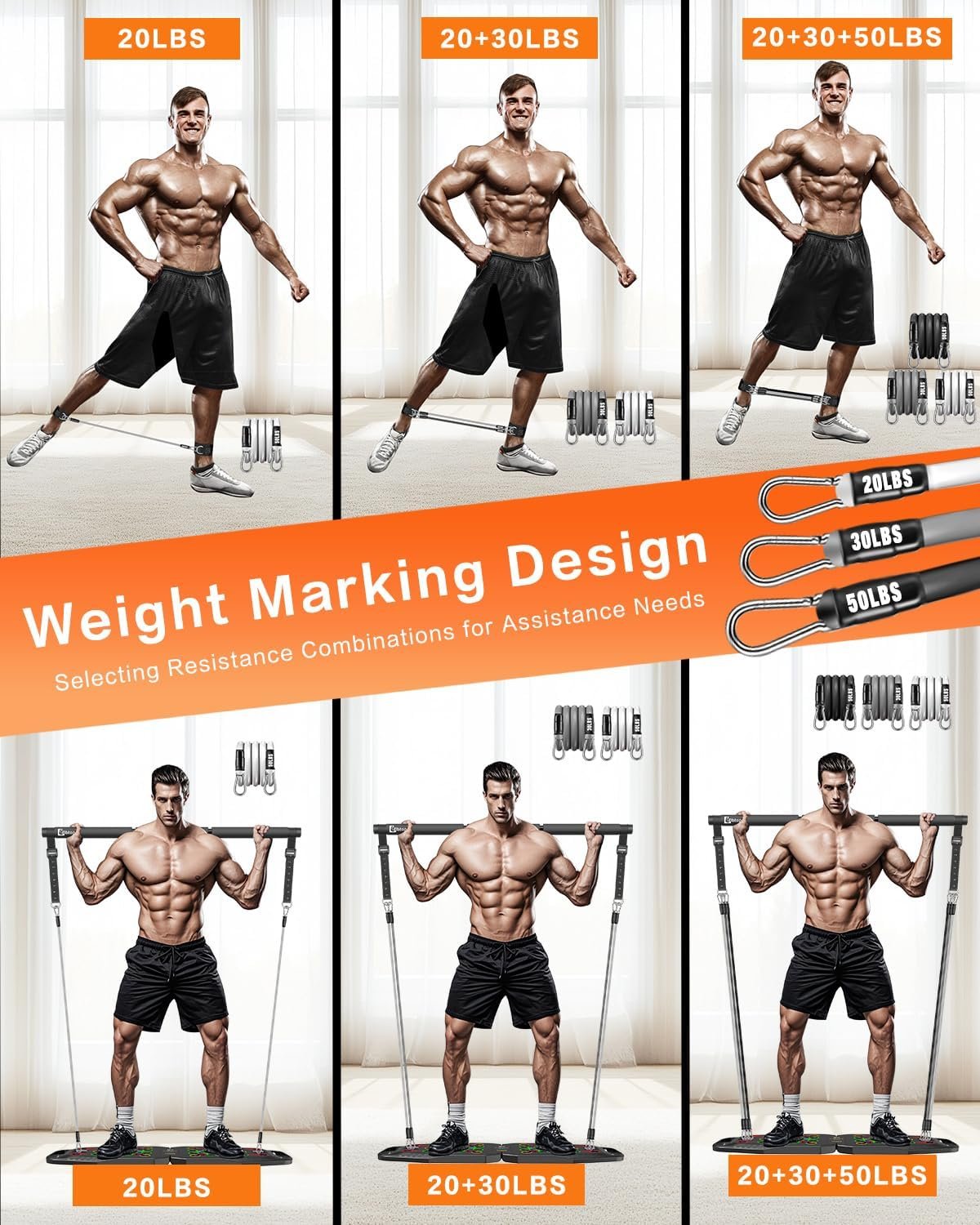 【Fitness System for Anyone】Our push up bar kit includes 3 sections of high quality steel pipes, 1 push up board, 2 push up handles, 6 resistance bands, 2 abdominal wheels, 2 handles, 2 wrist ankle straps, 1 door anchor, 1 portable bag, 1 training guide, 1 mini mat, Included accessories make it ideal for individuals of different fitness levels, from beginners to advanced.