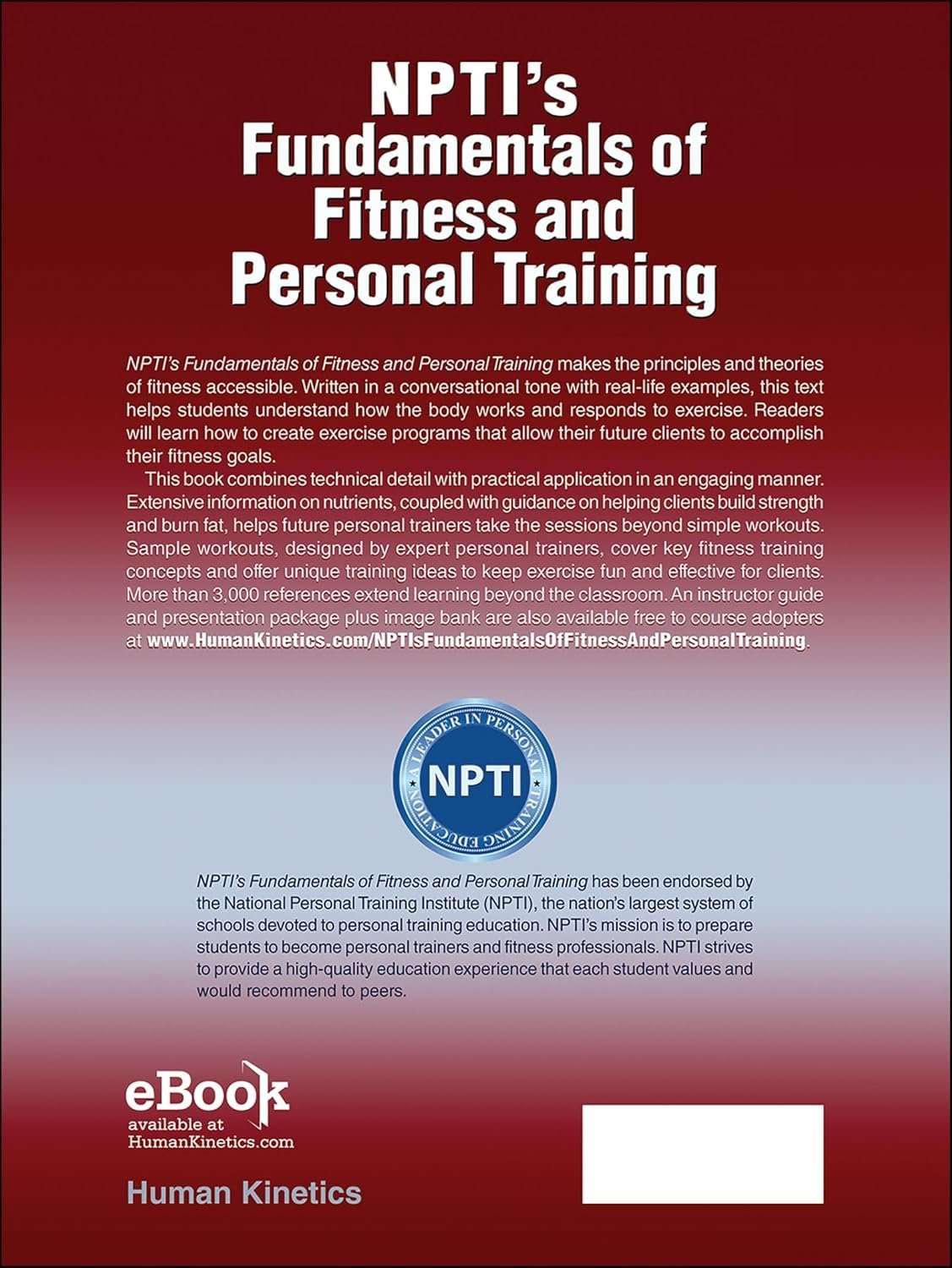 NPTI’s Fundamentals of Fitness and Personal Training makes the principles and theories of fitness accessible for all readers. Written in a conversational tone with real-life examples, this text helps students understand how the body works and responds to exercise. Readers will learn how to create exercise programs that allow their future clients to accomplish individual fitness goals.
