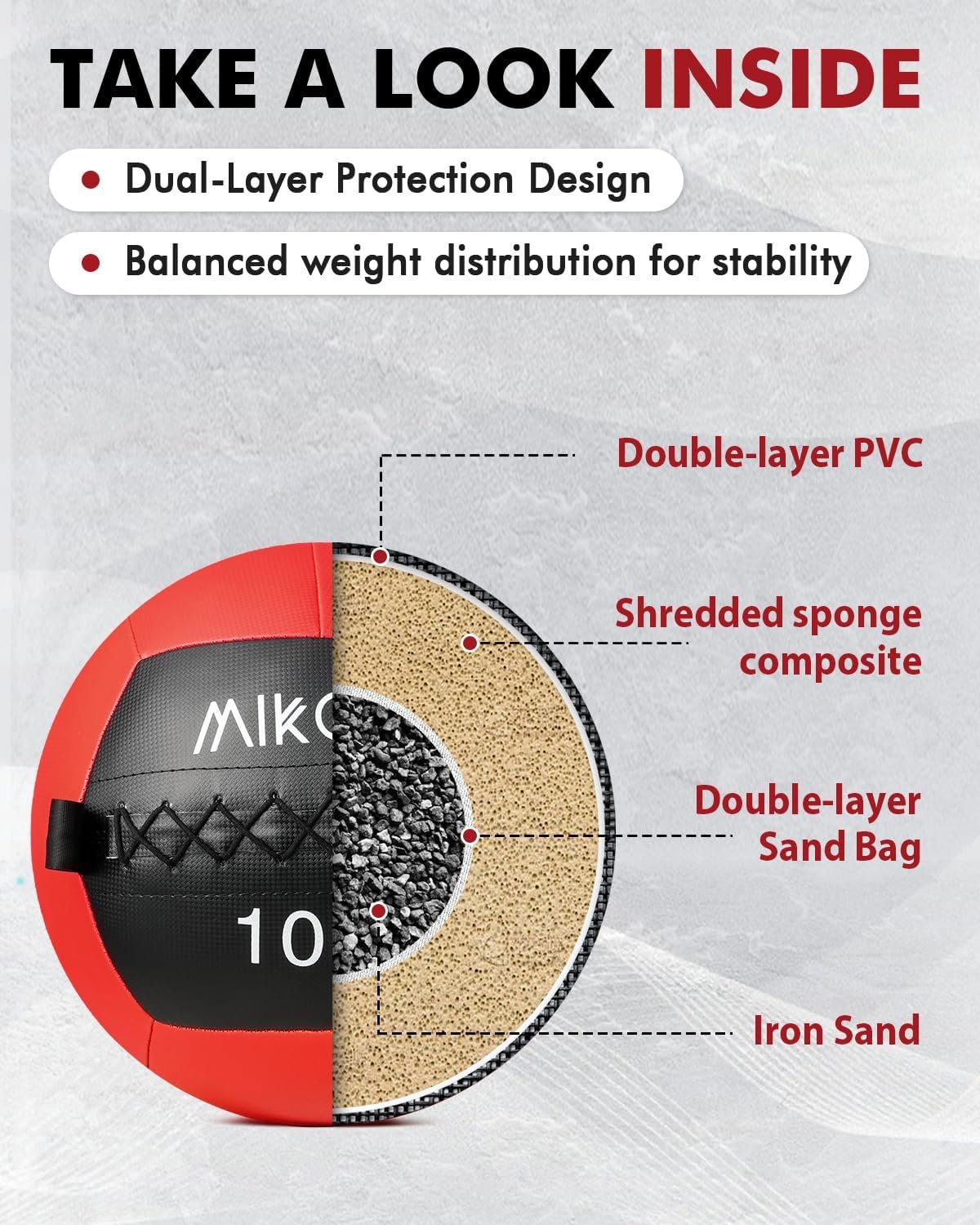 【Zero Leaks, Zero Shifting】The wall ball’s central metal sand weight is secured by double-layer Oxford cloth + 2x reinforced seals, ensuring permanent medicine ball shape and weight retention.