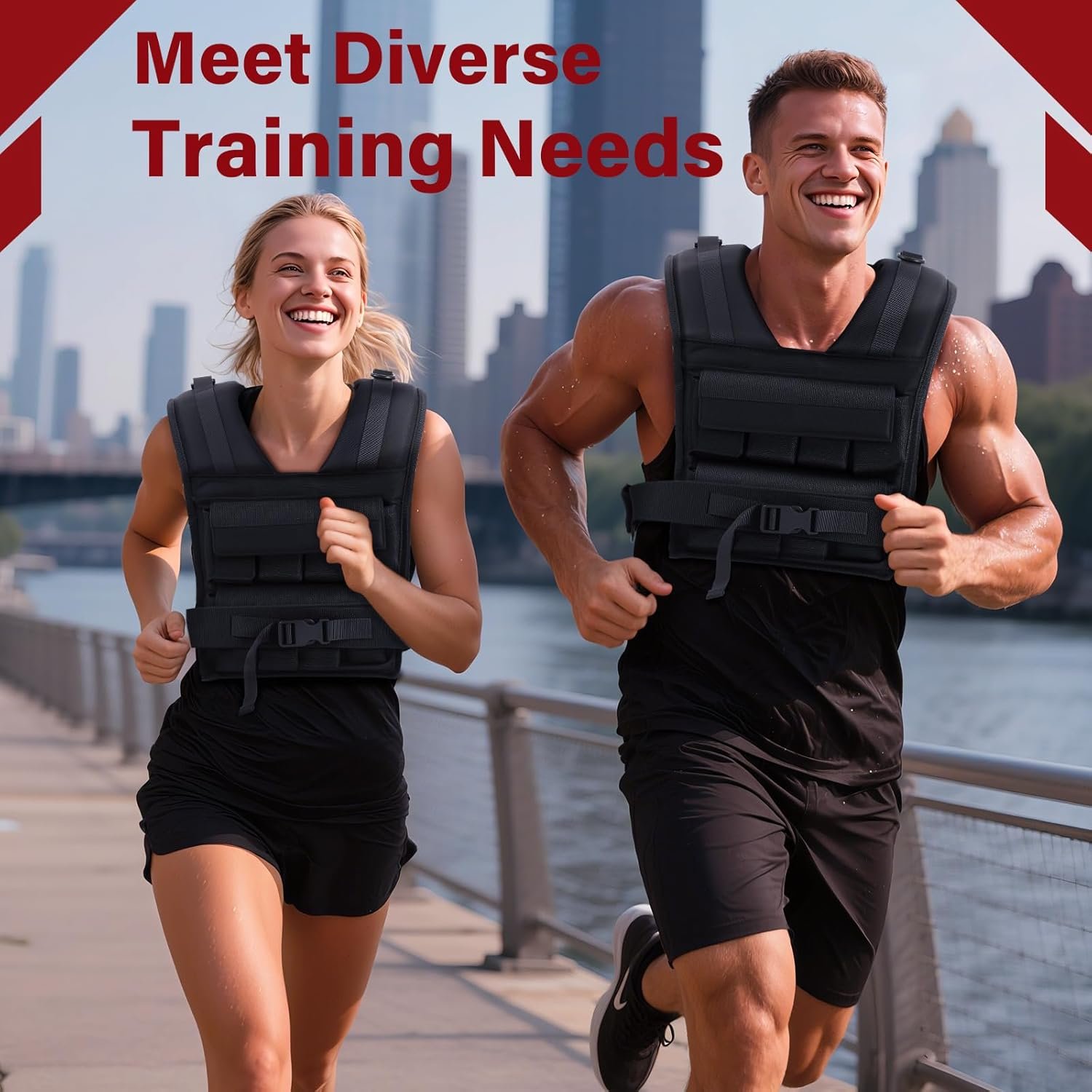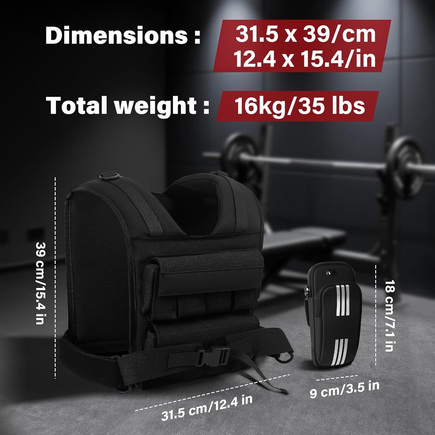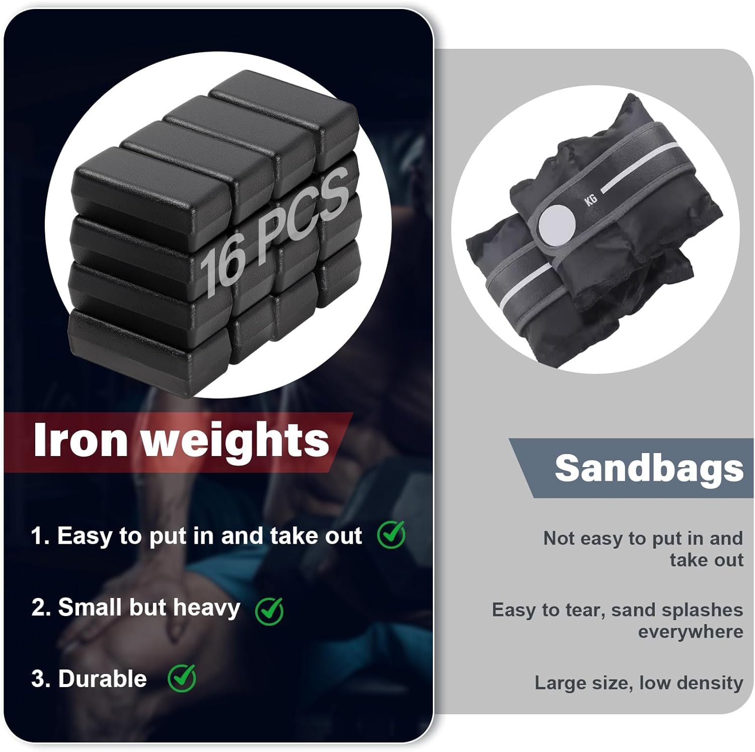 【Adjustable Weight To Meet Diverse Training Needs】Our weighted vest is equipped with 16 removable cast iron weights (1kg/2.2 pounds each), which can be placed symmetrically in front and back. You can flexibly adjust the weight of the vest according to your physical fitness level and training goals. Whether you are a beginner fitness enthusiast or a professional athlete, you can find the training intensity that suits you, making your exercise more targeted and challenging.