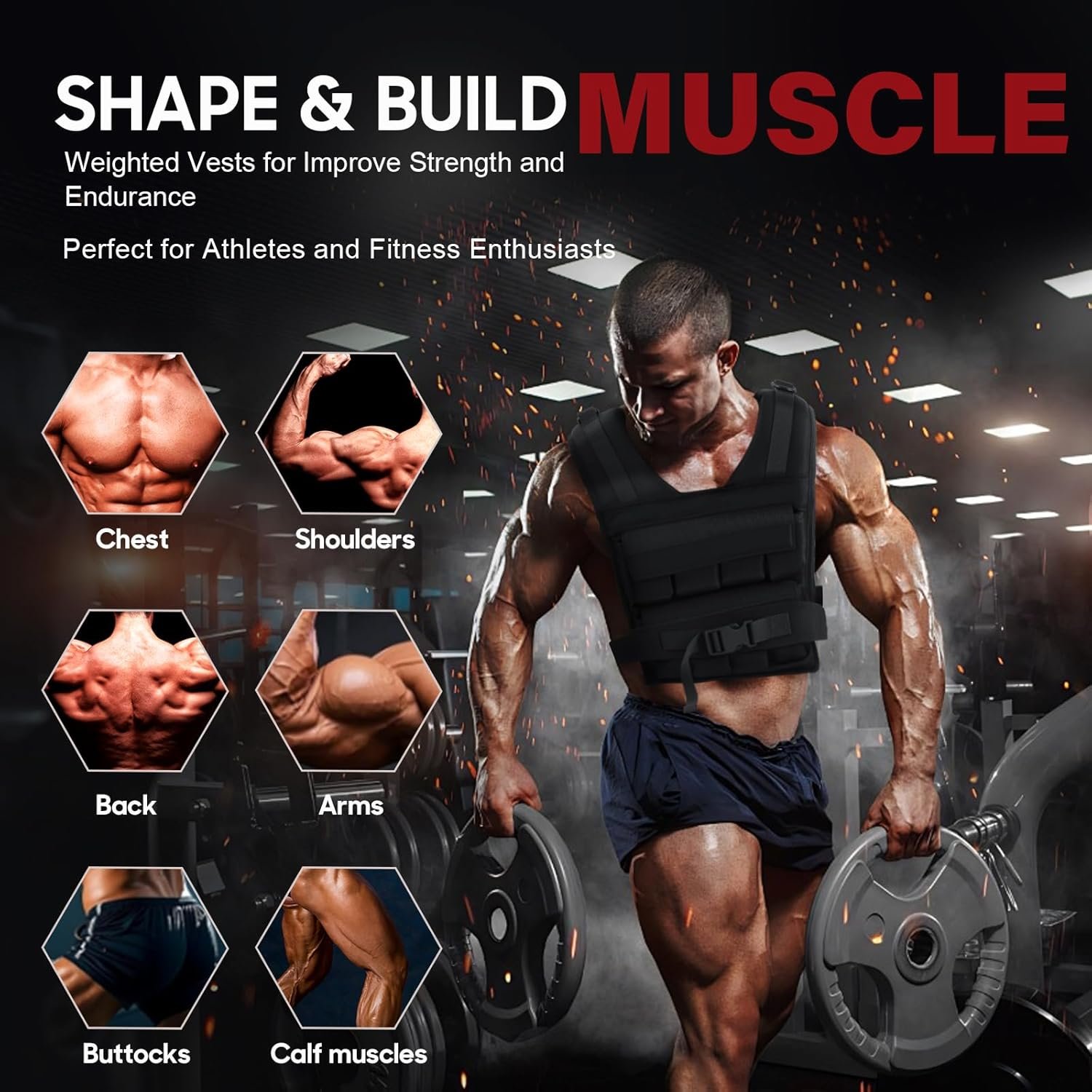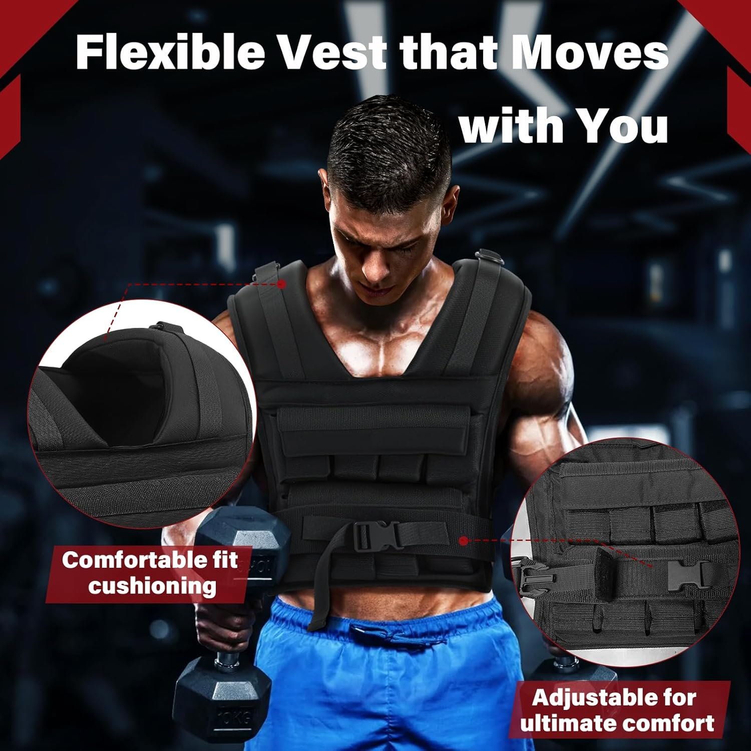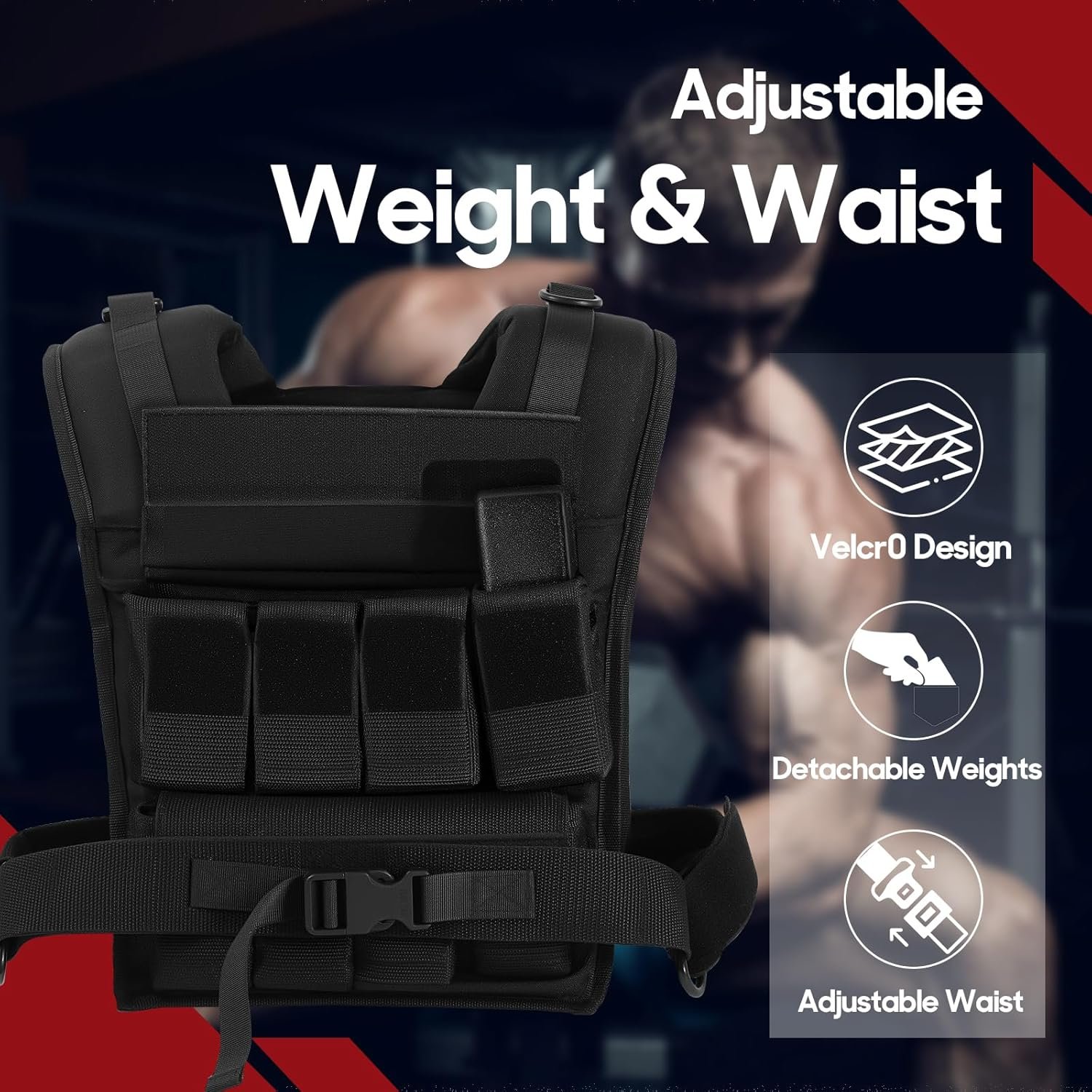 【Adjustable Weight To Meet Diverse Training Needs】Our weighted vest is equipped with 16 removable cast iron weights (1kg/2.2 pounds each), which can be placed symmetrically in front and back. You can flexibly adjust the weight of the vest according to your physical fitness level and training goals. Whether you are a beginner fitness enthusiast or a professional athlete, you can find the training intensity that suits you, making your exercise more targeted and challenging.