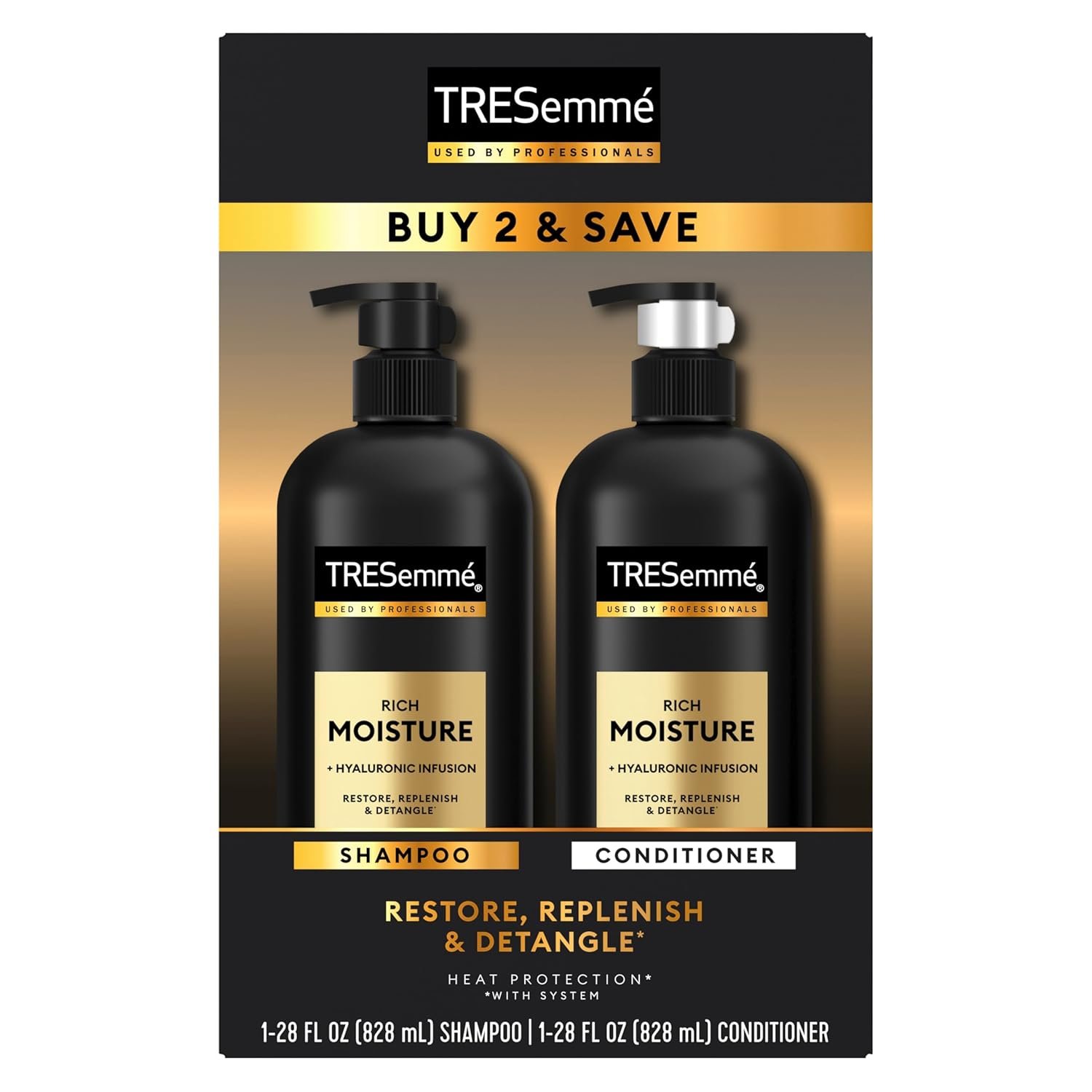Discover the secret to hydrated hair with TRESemmé Rich Moisture Shampoo and Conditioner. Infused with hyaluronic acid, this moisturizing system works to nourish strands to restore softness, replenish moisture & effortlessly detangle for healthy-looking shine. The Rich Moisture System is free from parabens, mineral oil, and DMDM hydantoin and is Certified Cruelty-Free by PETA to ensure your hair receives the best possible care without compromising on quality. To achieve the best results, start with Rich Moisture Shampoo and Conditioner and follow with TRESemmé Protecting Heat Styling Spray for additional heat up to 450 degrees so you can heat style with confidence. Lock in your style and moisture with our Extra Hold Hairspray, providing all-day hold and frizz control. For over 70 years, TRESemmé has been committed to democratizing salon trends, making salon-quality products accessible to everyone, every day. You can count on TRESemmé for trend-inspired, professional-grade products designed to maximize ooh la la in the everyday. So as you navigate your styling journey, we’ll be here to help you style your hair (and life) your way.