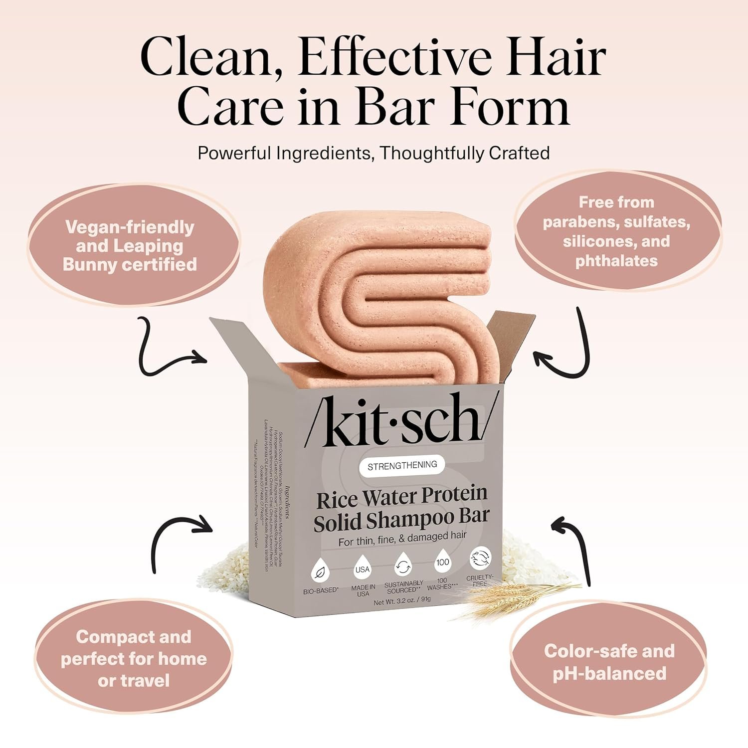 Kitsch Rice Water Shampoo Bar - Dry Hair Shampoo & Soap Bar for Hair CareKitsch Rice Water Shampoo Bar - Dry Hair Shampoo & Soap Bar for Hair Care