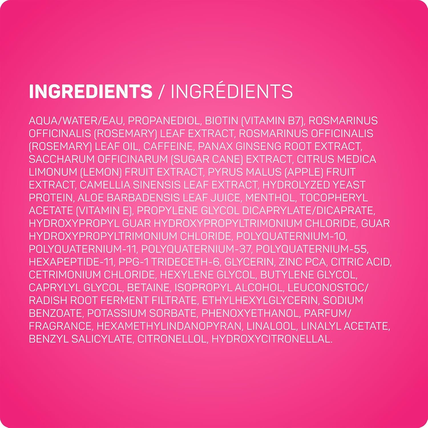 Essential Ingredients: Infused with Rosemary Oil to help strengthen hair follicles and improve scalp health while a conditioning blend of Caffeine, Ginseng, and Biotin helps protect your lengths from future breakage.