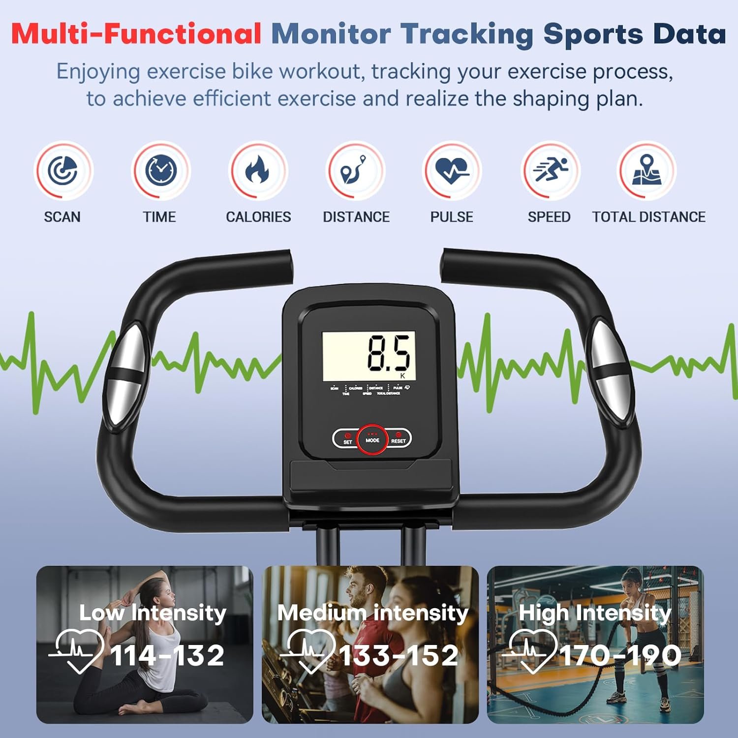 Adjustable Seat with Movement Posture: This upright exercise bikes features an 8-level adjustable seat height and back support, accommodating users from 4.4 to 6.6 feet tall. Unlike other folding bikes with fixed seats, it’s ideal for households where multiple family members can share the same machine regardless of body type. Designed with trendy modern aesthetics, this foldable indoor bike has become a popular choice in over 100 countries and regions