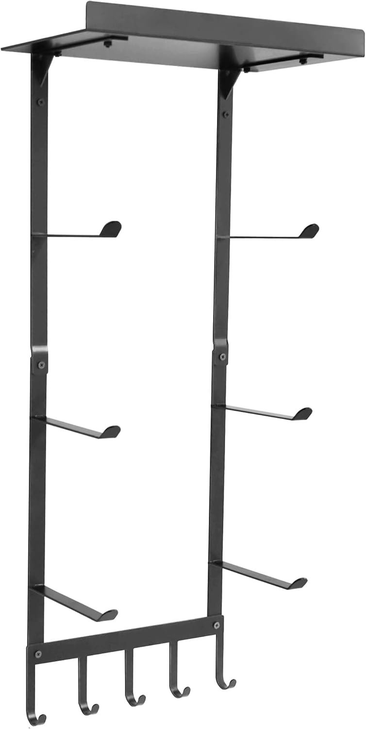 𝐌𝐚𝐤𝐞 𝐘𝐨𝐮𝐫 𝐇𝐨𝐦𝐞 𝐆𝐲𝐦 𝐎𝐫𝐠𝐚𝐧𝐢𝐳𝐞𝐝! – The 4-tier storage rack can hold a variety of yoga mats, foam rollers, yoga blocks and yoga wheels, and the Bottom 5 widen hooks can hang most yoga accessories like resistance bands, stretching straps, jumping ropes, and more small gym euipments. Keep your yoga studio or home gym organized and no more messy yoga supplies on the floor with this wall mounted storage rack.
