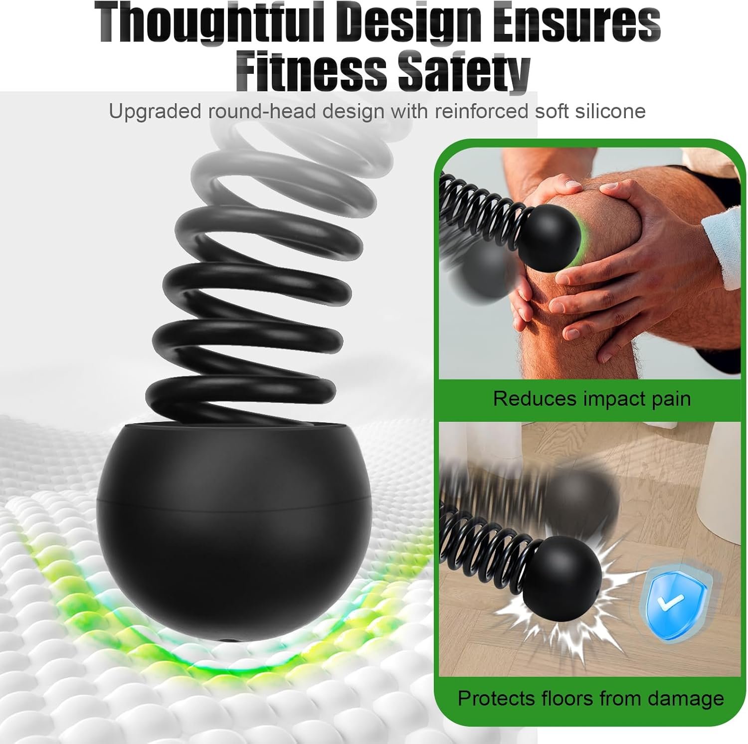 ✅Protecting Your Safety During Exercise : Upgraded to a thick soft silicone round head at the top to cushion the elasticity during exercise, it is not afraid of bumps or damaging floors and walls, ensuring the safety of your exercise process. In addition, it comes with safety wrist straps that can be hung on the wrist to prevent accidental dropping during exercise, and can also be hung on a hook for easy storage.