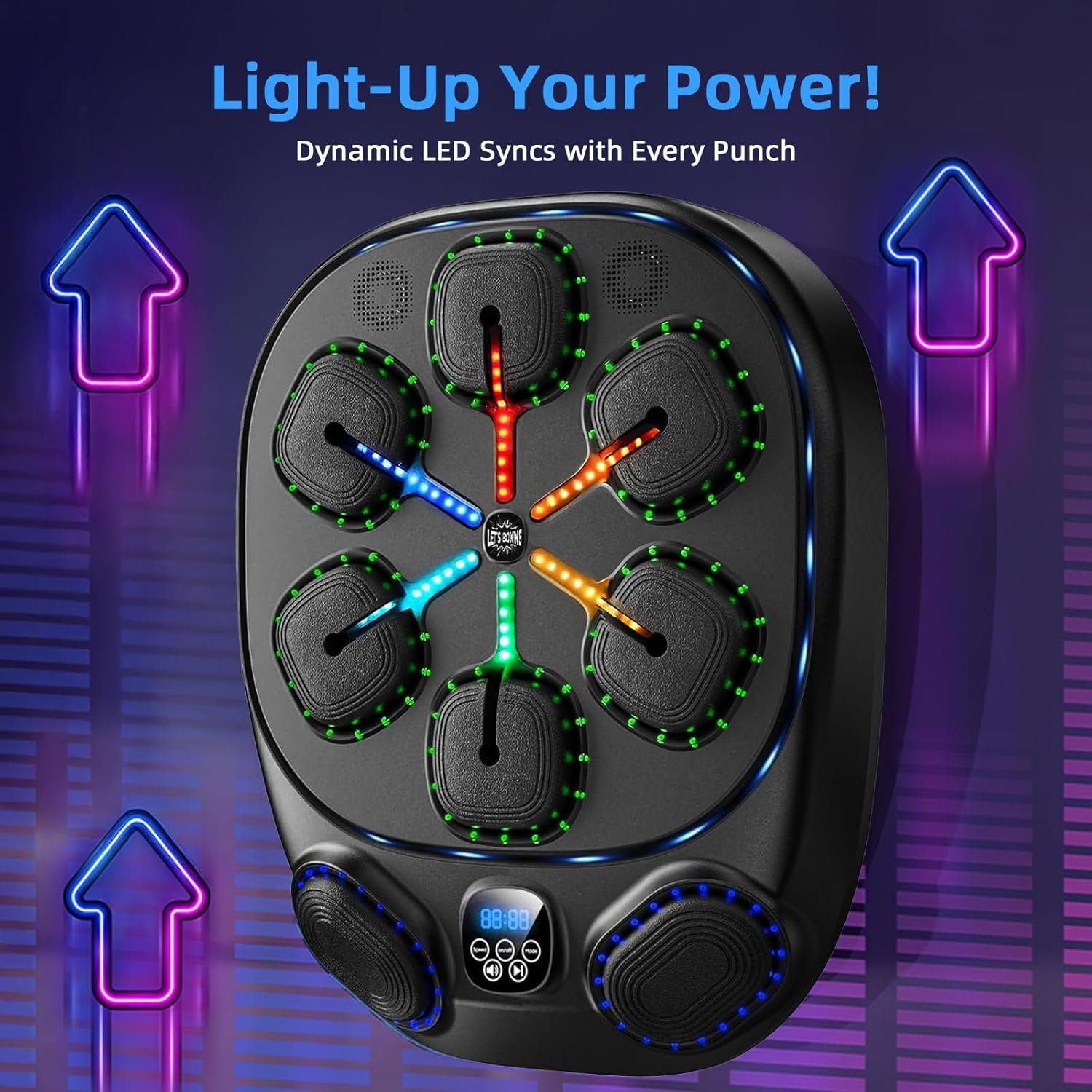 **💡【Dynamic LED Light Show】** Colorful lights sync with your punches and music, creating an immersive workout atmosphere to boost motivation.