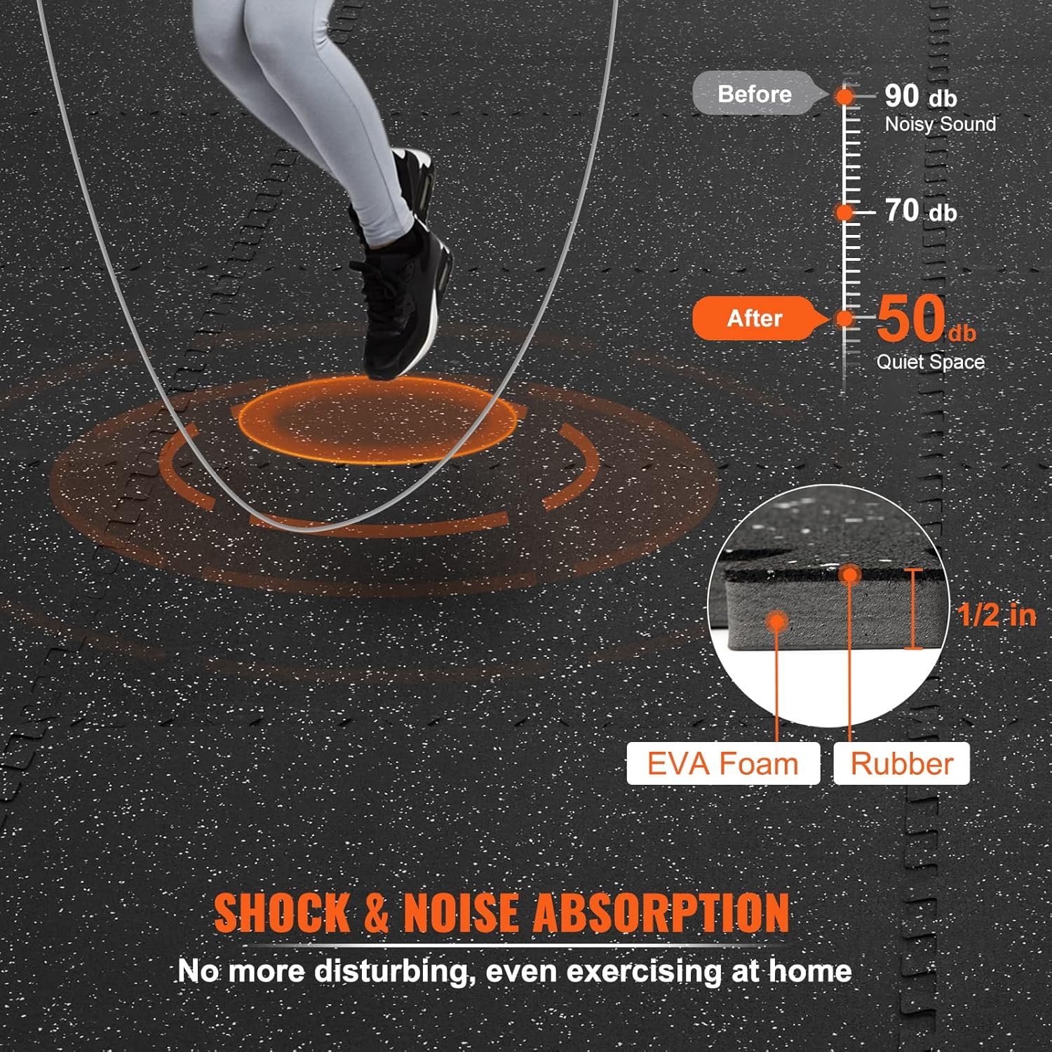 Thick & Spacious Workout Mats: With a 48 sq.ft coverage area, our 12 PCS mats can build a spacious gym anytime, anywhere! Made of rubber top and elastic EVA bottom, the 0.56-inch overall thickened mats will not collapse easily, which can be used to cushion shock absorption during your exercise, fully protect the floor and reduce noise. The mats feature strong resilience and bearing capacity, and it works great even under heavy exercise machines to dampen vibration and protect your floor.