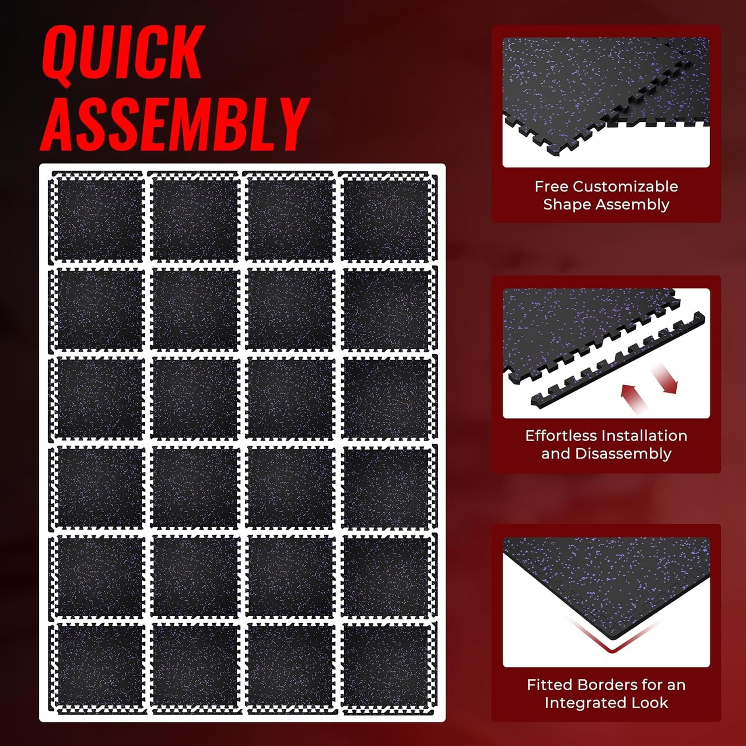 【Easy to Assemble and Detach】These workout mats feature interlocking edges, allowing you to move or extend them easily according to your space needs. Each piece comes with 2 detachable borders, enabling you to create a neat square or rectangular shape.