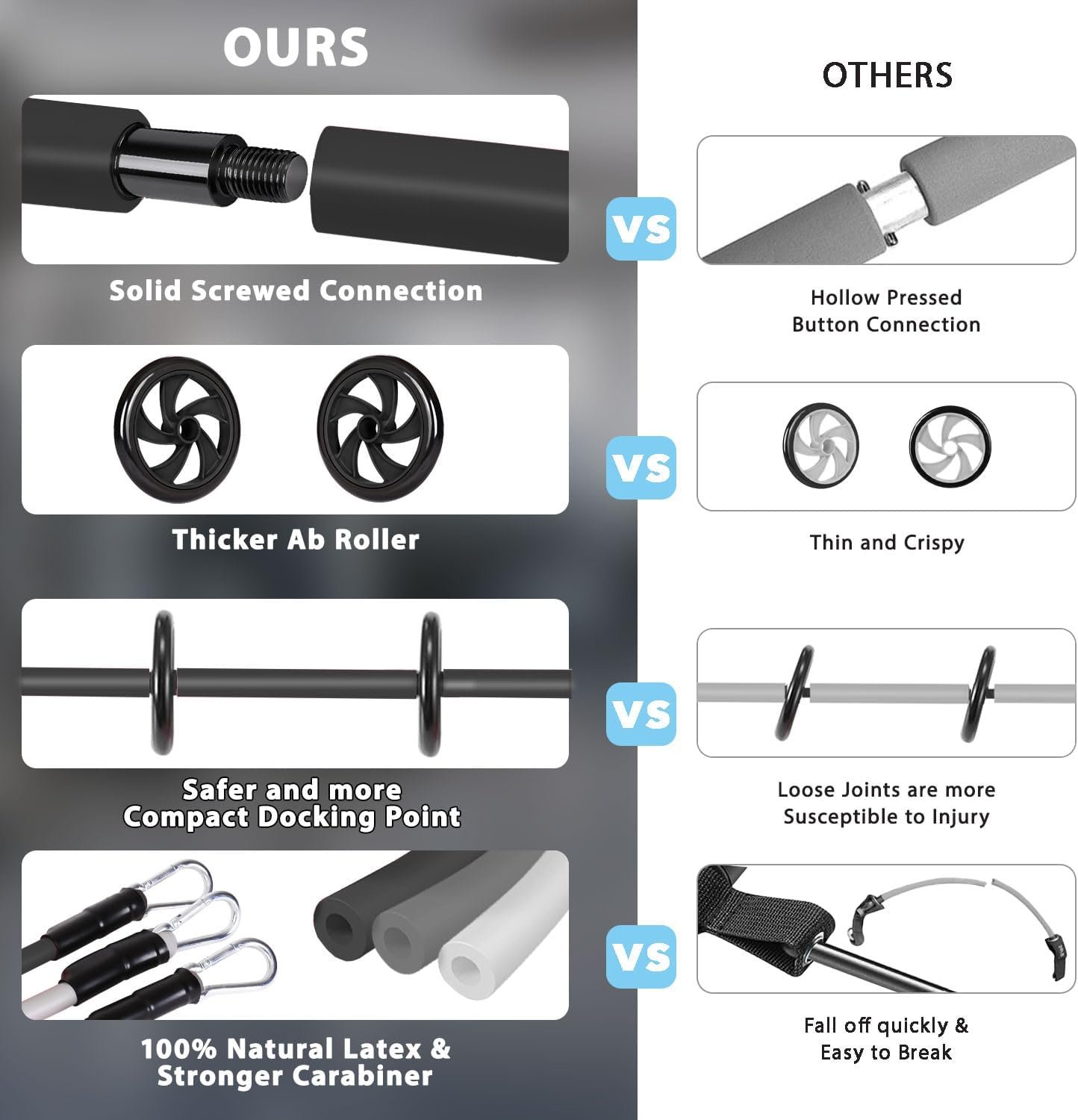 【Portable Home Gym】The upgraded Pilates bars is threaded connection, which can quickly complete the connection and disassembly of the rod, and the operation is very convenient, It won’t break like a button. The upgraded ab Roller is thicker,so it’s safer. The included portable bag allows you to easily store all the accessories of the multifunctional pilates bar kit and save a lot of space. You can take it with you when exercise outdoors or travel.