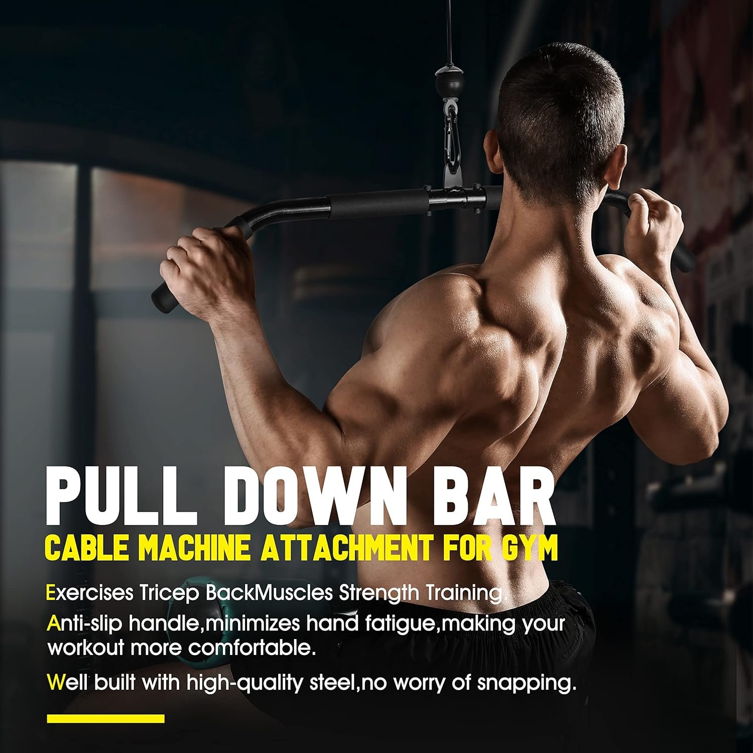 Professional Design and Various Exercise Modes: After a lot of market research and communication with fitness consultants. We designed a complete tricep pulley system, with 2 pulley, 3 cables, lat pull down bar and other weights pulley system gym attachments. So we upgraded the original kits, allowing you to flexible DIY the workout pulley system and choose your own way to do various exercises, such as Cable Corssover, Biceps Curl, Triceps Pull Down, Lat and Lift, Row, Fly and etc