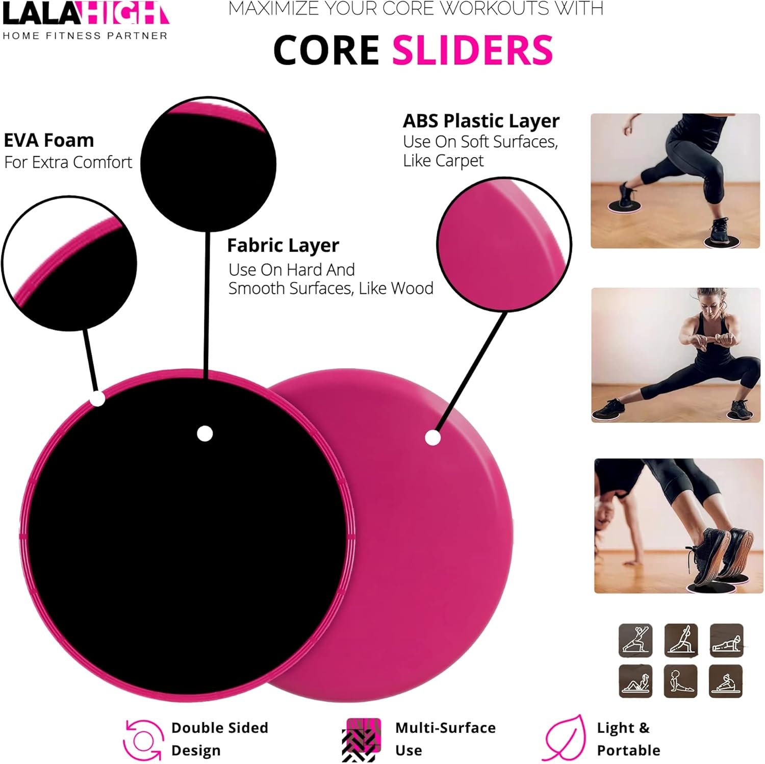 All-In-One Home Gym System:LALAHIGH pink styled home workout equipment kit is perfect for women or men, comes with foldable push up stand, push up bar handles, resistance bands, booty bands, and core sliding discs.