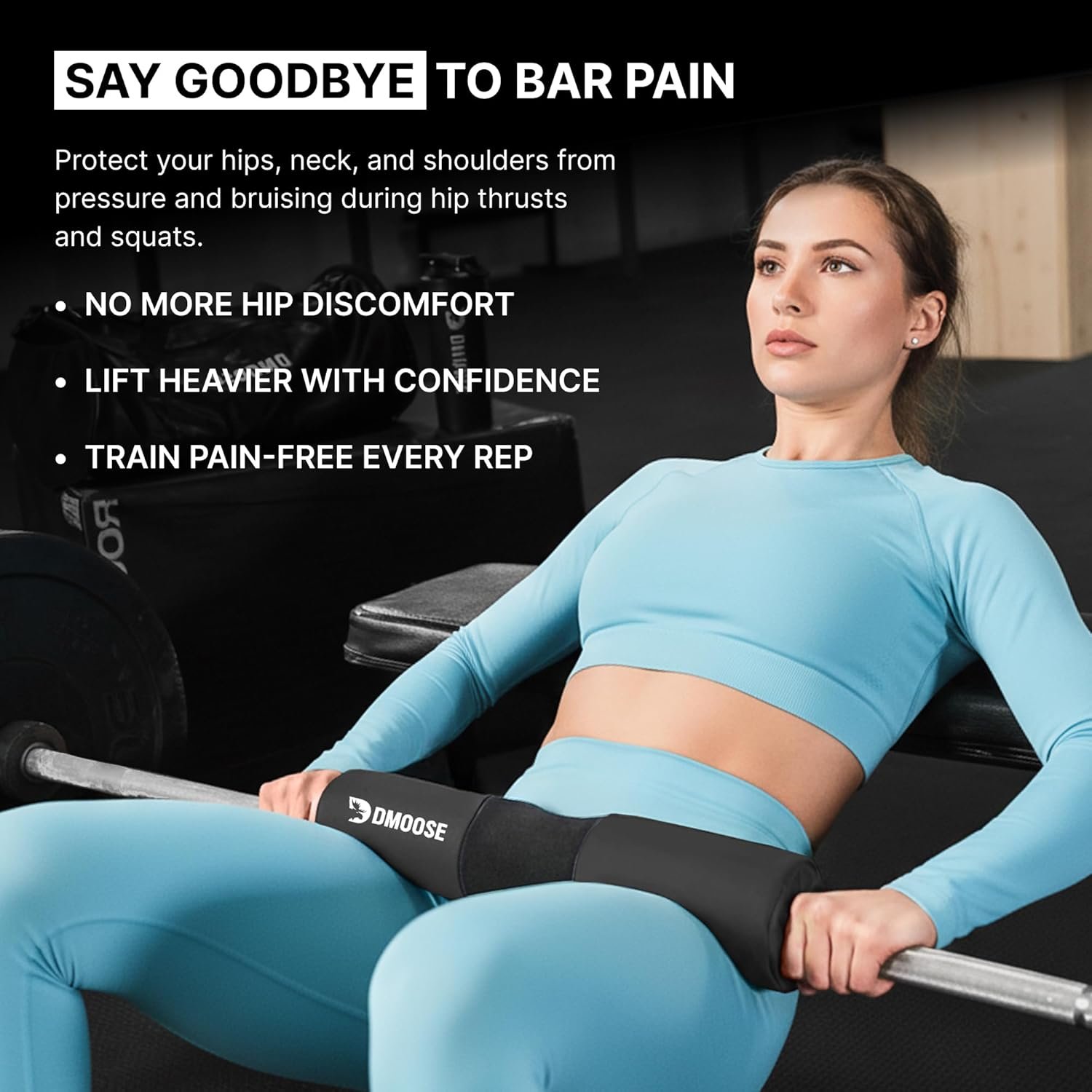 DURABLE & SWEAT-RESISTANT: Made from durable, sweat-resistant material, the DMoose Hip Thrust Barbell Pad repels moisture, stays odor-free, and withstands intense workouts. Built for longevity and hygiene during every session.