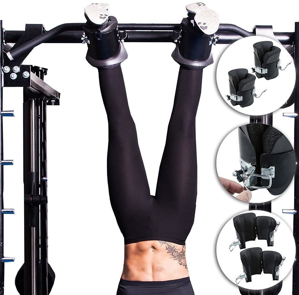 Revolutionary design – The new design can be perfectly fixed on ankles and feet of any size, and has a strong safety lock to ensure that the feet and ankles will not slip over the inversion boots, and can be attached to most size pull up bar (less than 35mm/1/2″ in diameter).