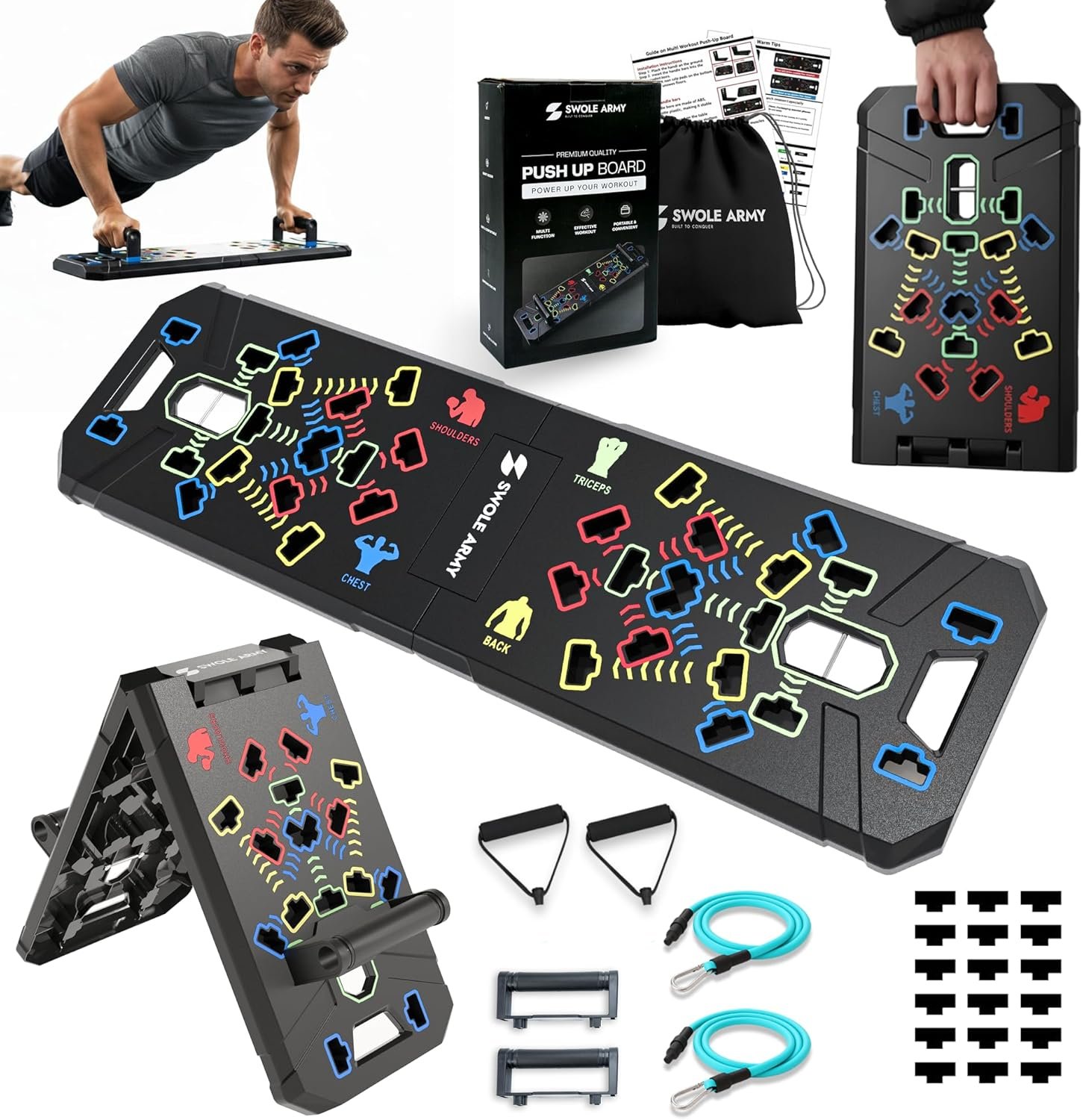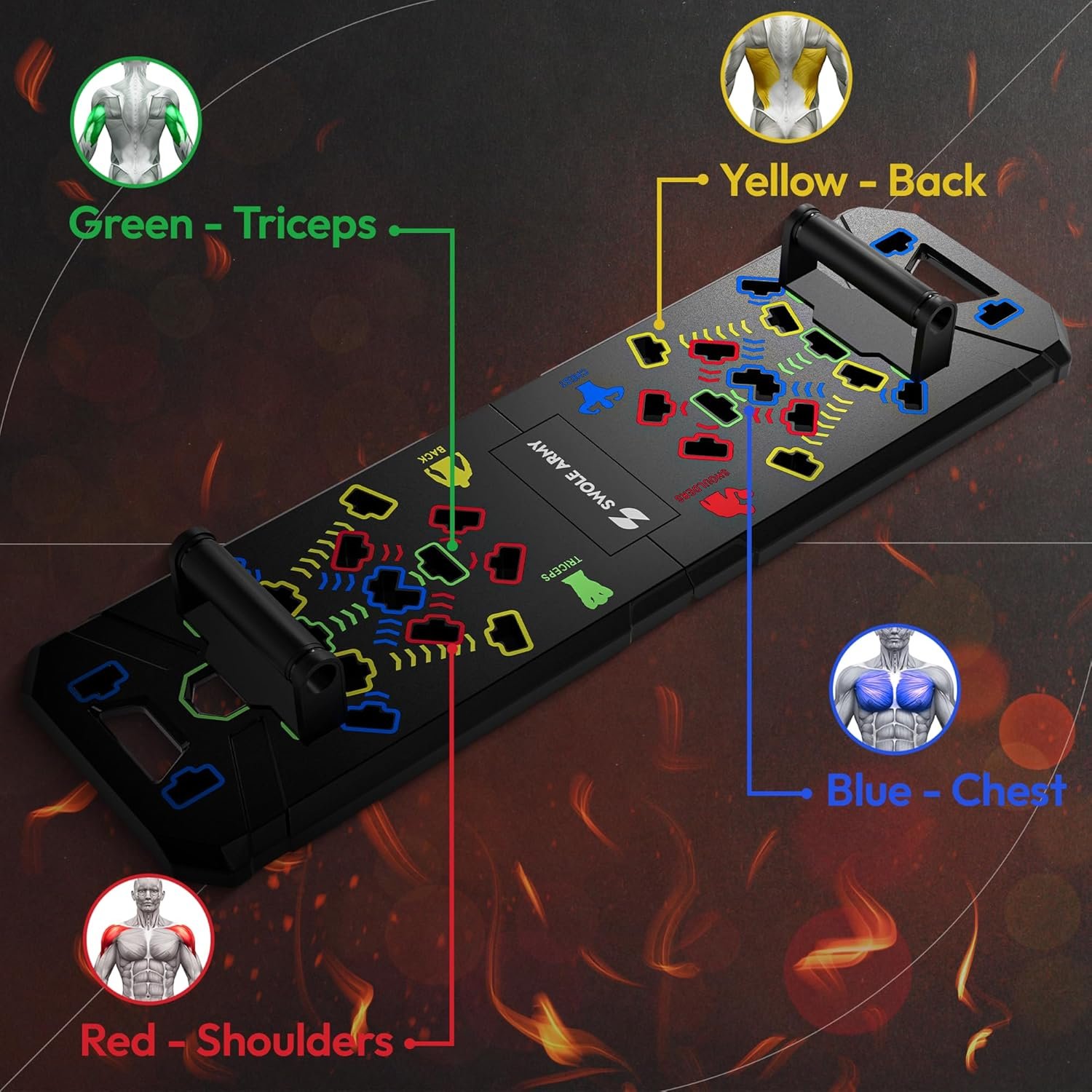 💪 All-in-One Design: No experience? No problem. With color-coded positions that show exactly where to place your hands to target your chest, shoulders, triceps, or back, our foldable pushup board takes out the confusion and makes every rep count.