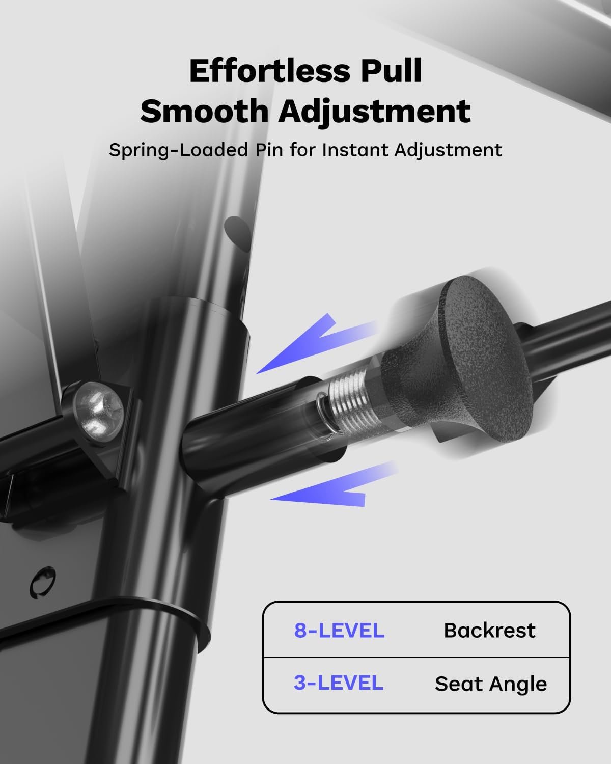 🦵 [8+3 Adjustable Positions]: Switch effortlessly and quickly between 8 backrest angles (-30° to 90°) and 3 seat positions with a single hand using self-resilient spring locks. The superior lock cylinder system guarantees smooth, secure adjustments—making it easy to adapt the bench for different exercises, targeting multiple muscle groups for a complete strength training experience. The ultimate adjustable bench for precise, effective gains.