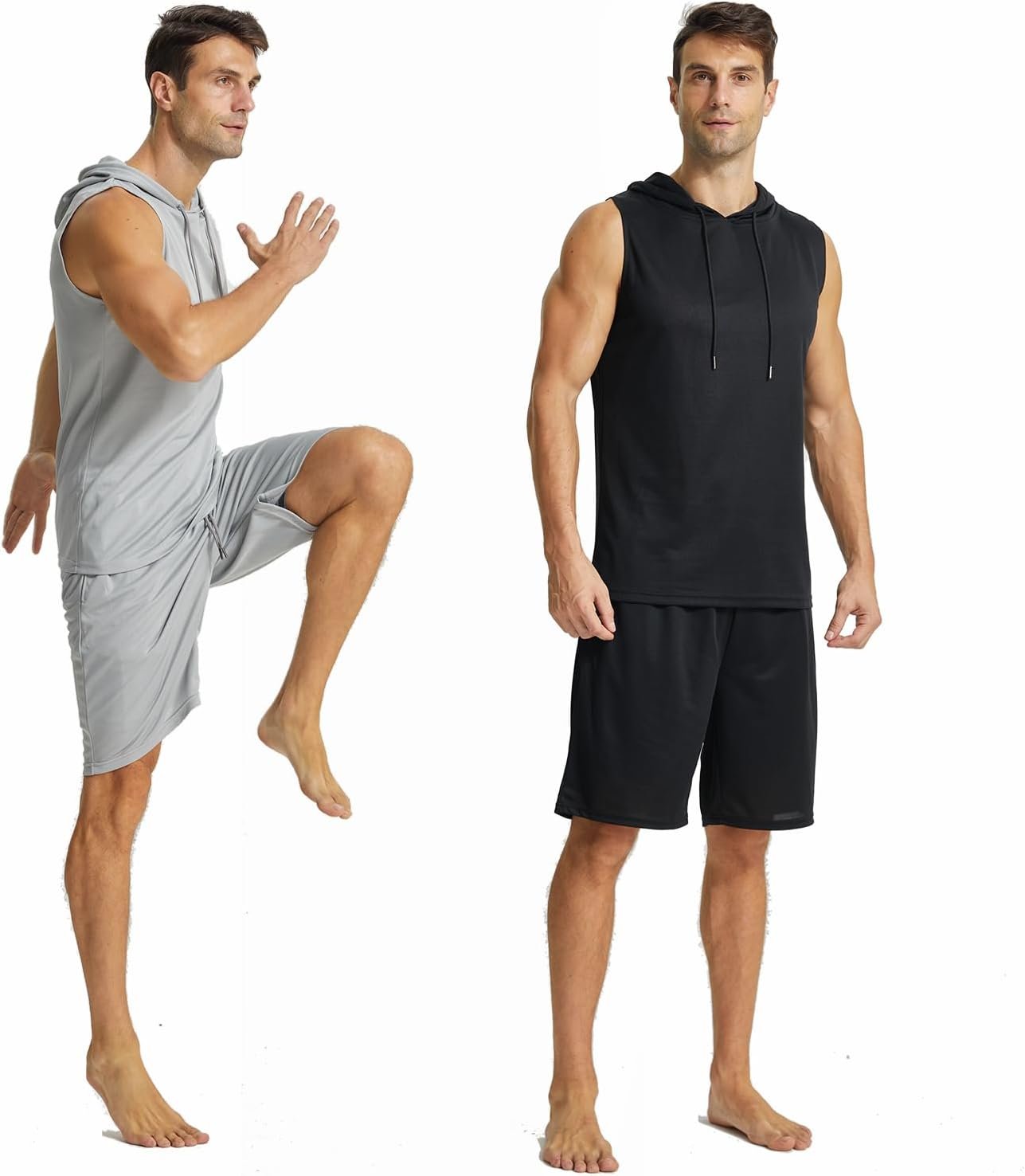 2 piece outfits made of premium fabric, soft, breathable, stretchy, and sweat-wicking, let Your Body & Muscle keep Cool and Dry during your workout.The sleeveless sweatshirt men perfect for fitness, it shows your muscles well, outlines your muscles, and looks very strong.