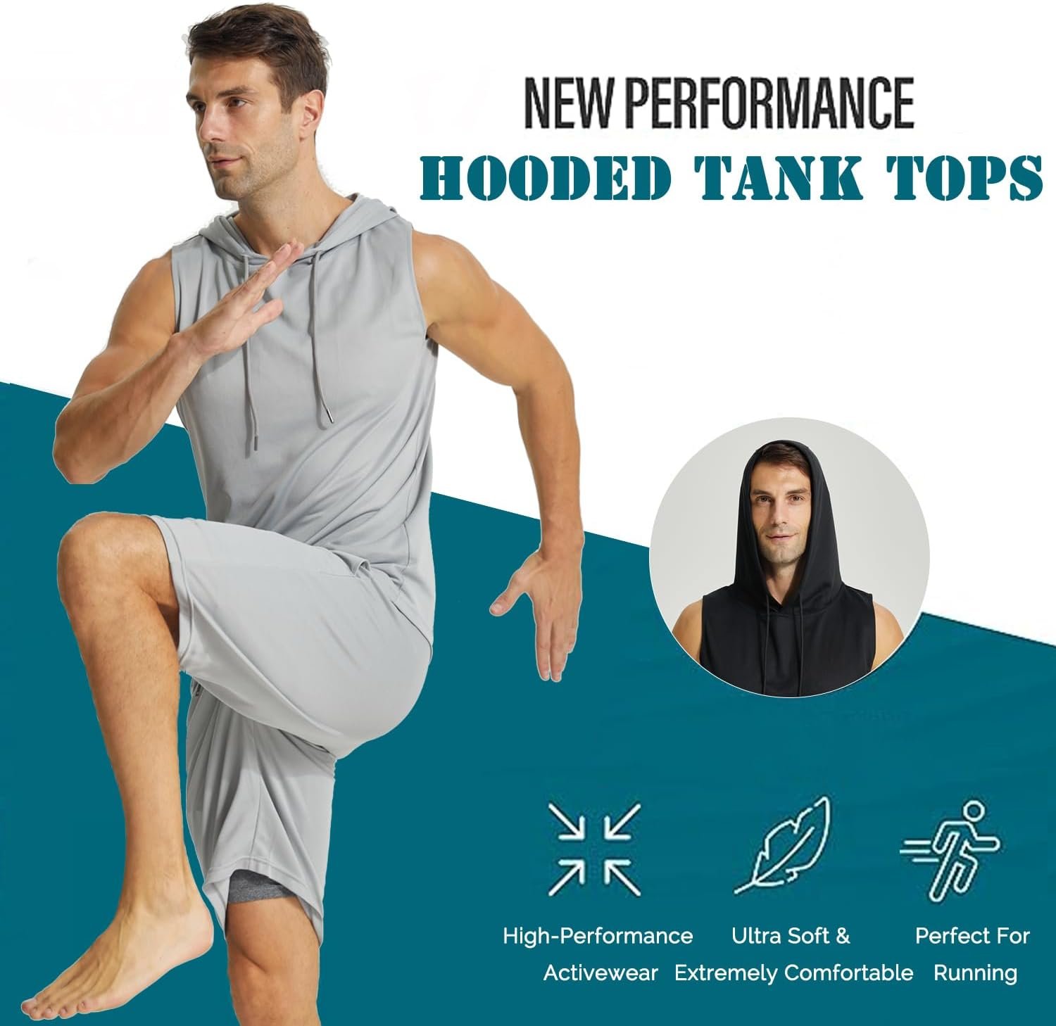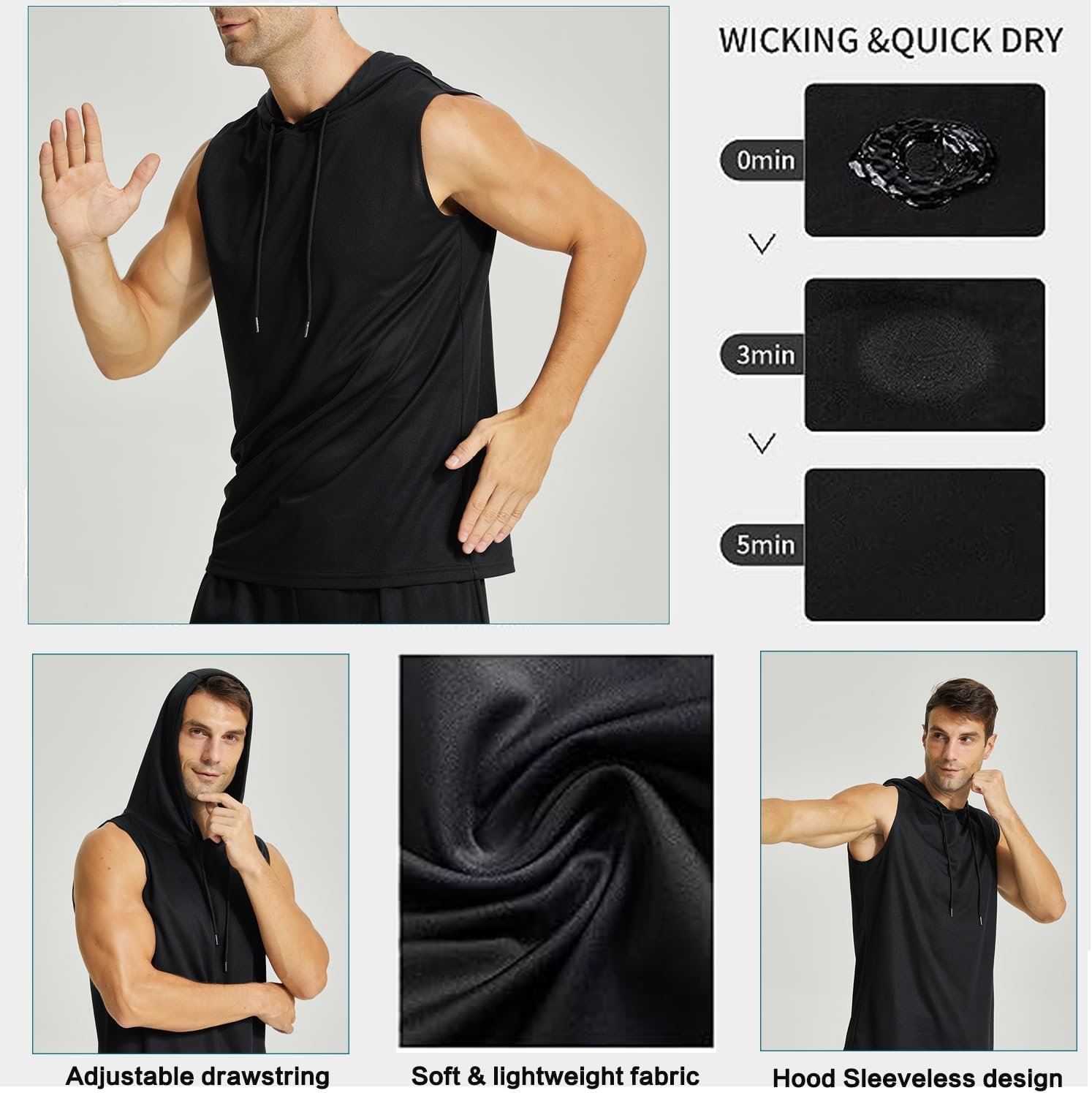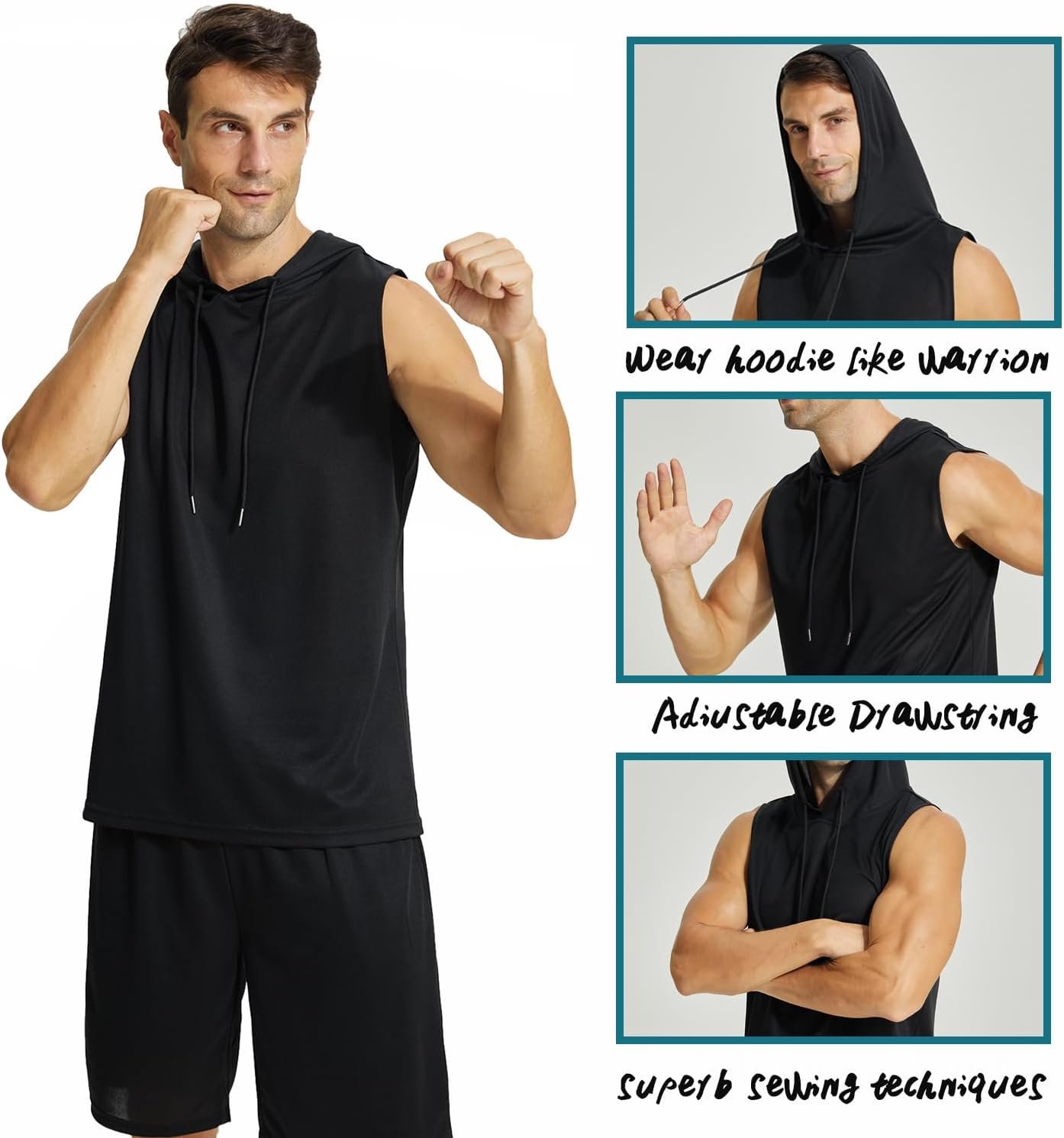 Sleeveless sweatshirt men is made of a blend fabric. Soft, breathable, lightweight and strtechy material give you a comfortable touch, which can aslo make you cool during workout.