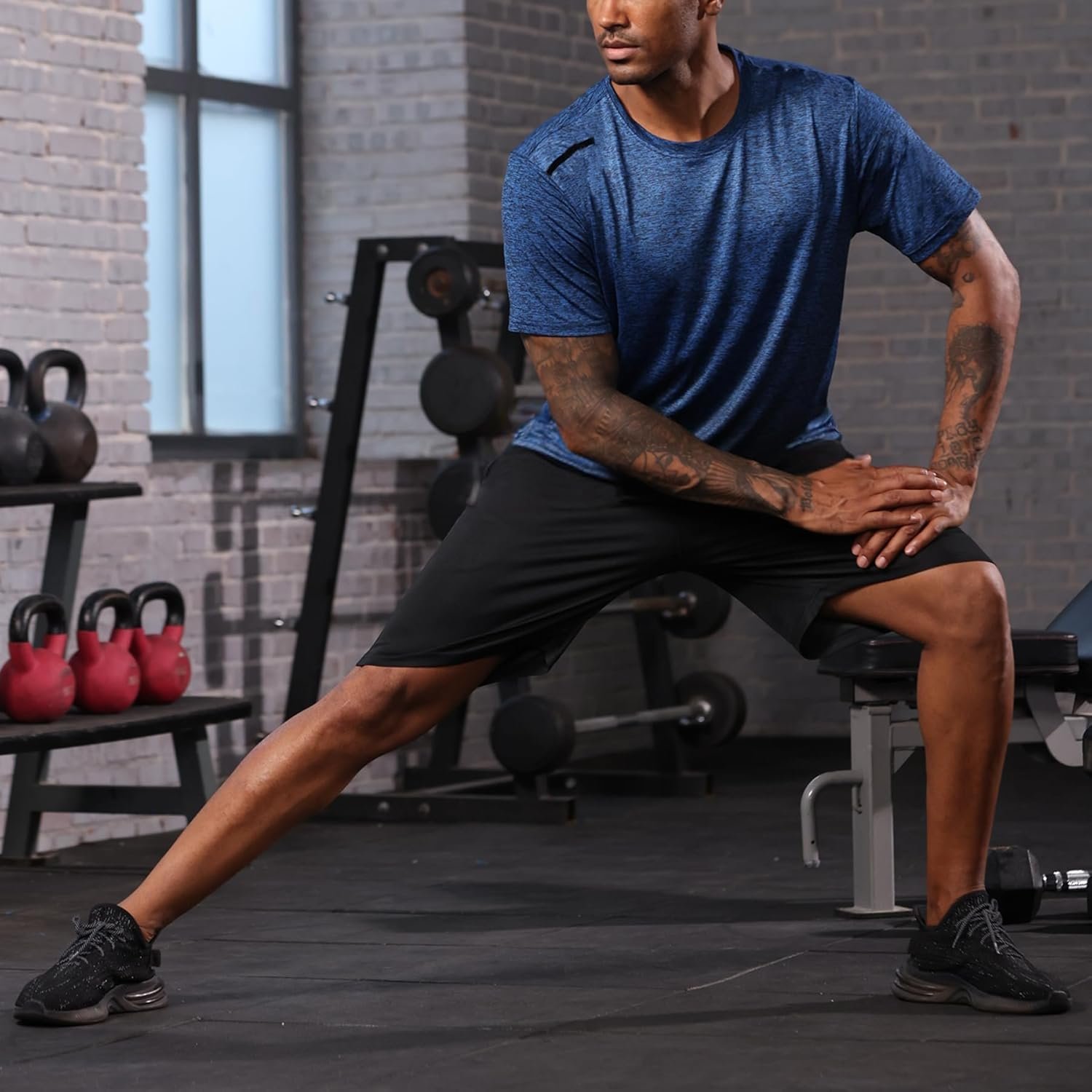 The video showcases the product in use.The video guides you through product setup.The video compares multiple products.The video shows the product being unpacked. Men’s Gym Shorts Shirt Set Merchant Video