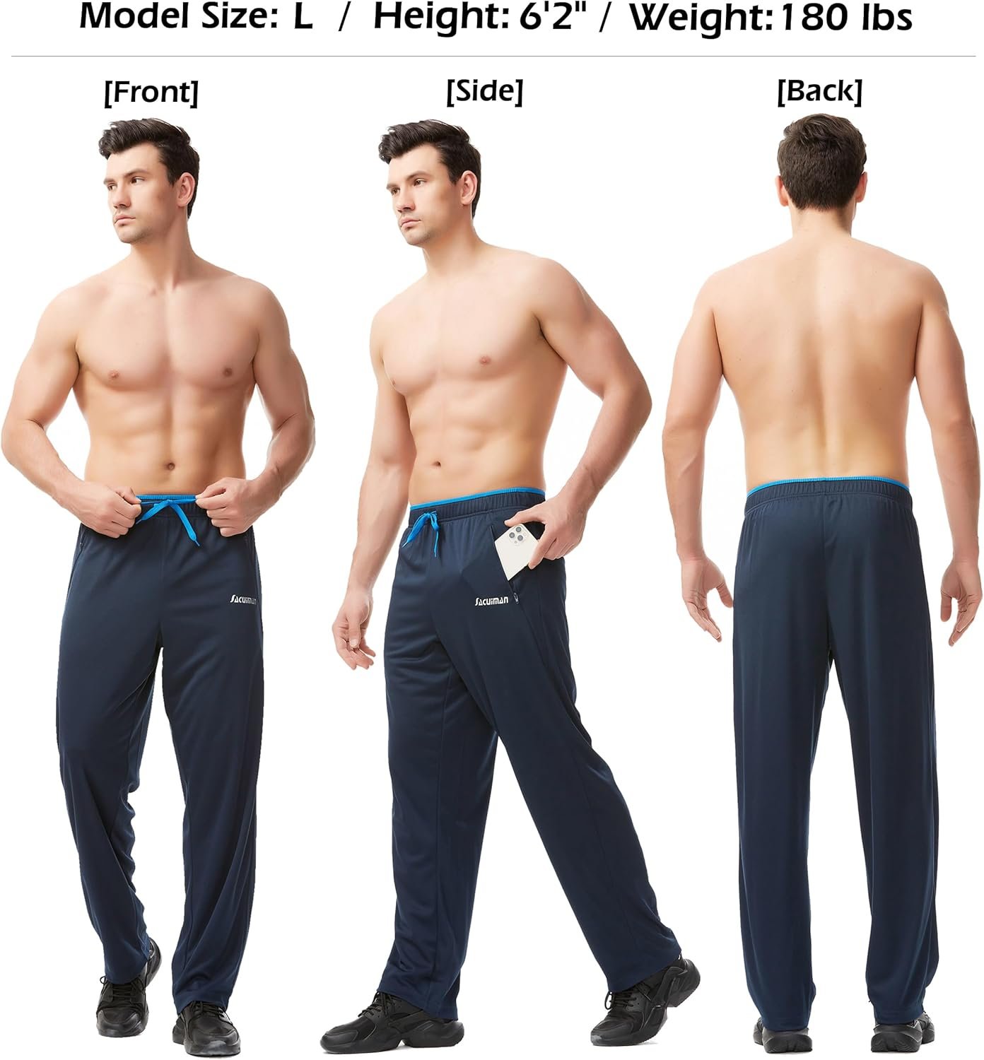 About SACUIMAN Mens Sweatpants with Zipper Pockets Open Bottom Athletic Pants for WorkoutWe focus on mens shorts sweatpants with comfort and practicality.Which aims to make the consumers really feel the charm of the product itself.