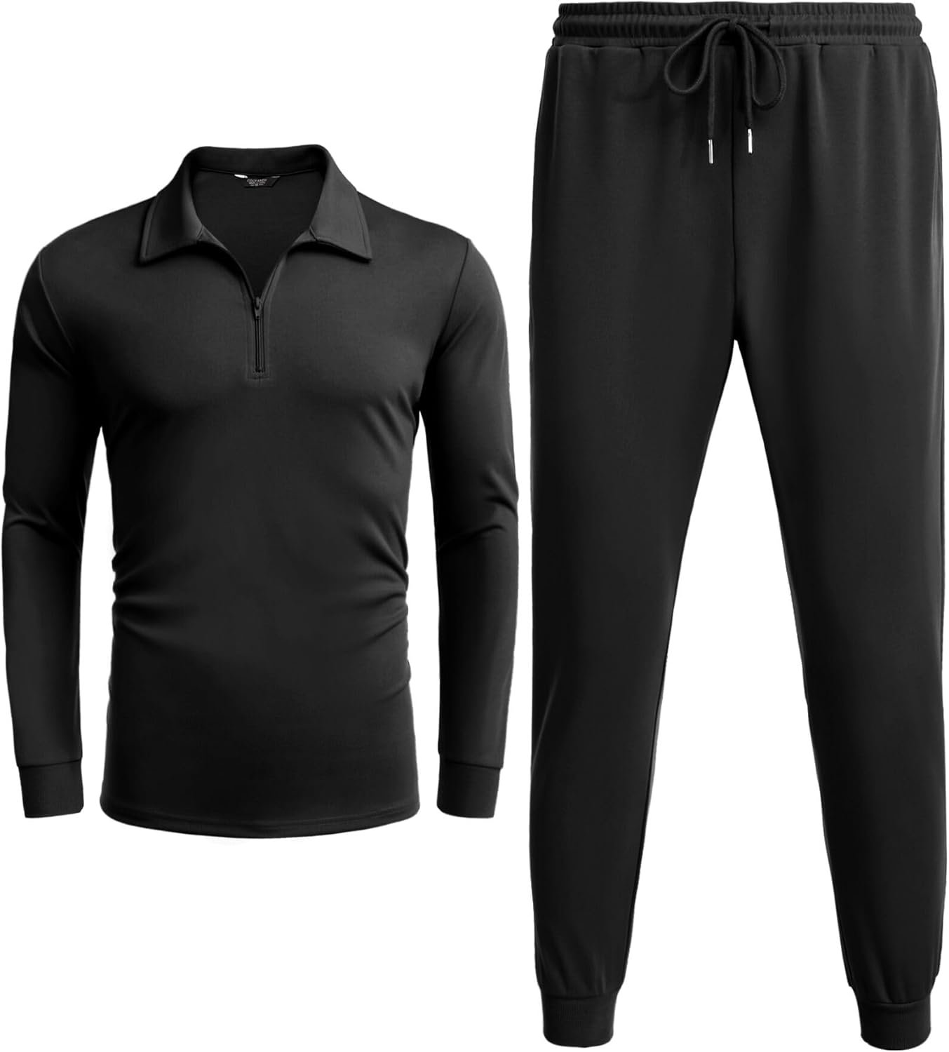 Men’s 2 Piece Sweat Suits Jogging Workout tracksuit Set Casual Quarter Zip Suit