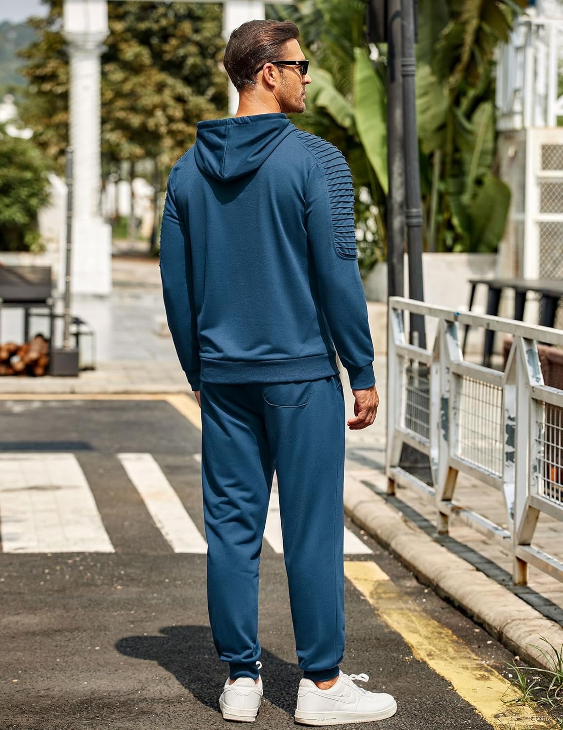 Show The Collocation Of This Men’s Sweatsuit In Different Scenes