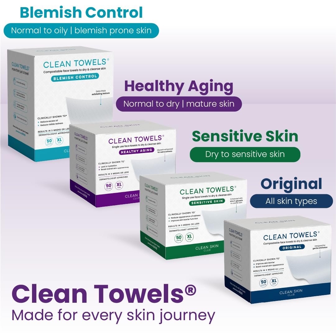 Glycerin-infused Clean Towels . Dermatologist tested and approved.