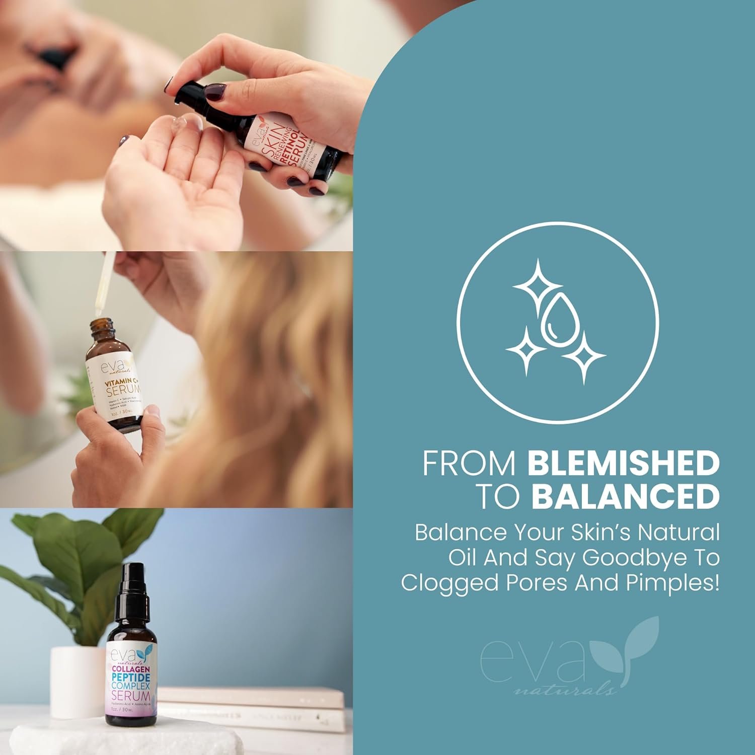 CLEAN, SKIN-LOVING INGREDIENTS – SAFE, NATURAL, EFFECTIVE: Eva Naturals blends clean beauty values with science-backed actives and gentle plant-based ingredients like Tea Tree, Green Tea, Witch Hazel, and Aloe Vera. Free from harsh chemicals, this skincare bundle supports a healthier-looking complexion without unnecessary fillers or irritants. Perfect for women seeking high-performance face serums that prioritize safety, quality, and visible results.