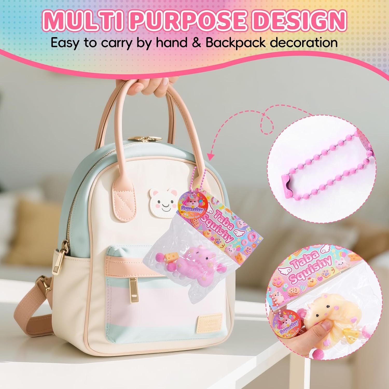 The design and appropriate size of the bead chain allow it to be hung on a backpack or carried in a bag at any time. To use these toys anytime.