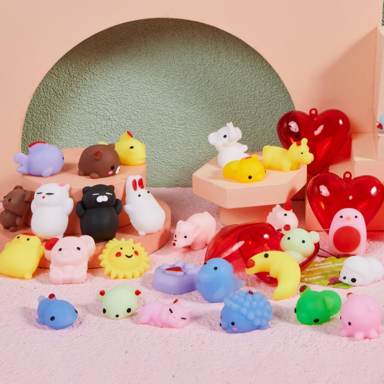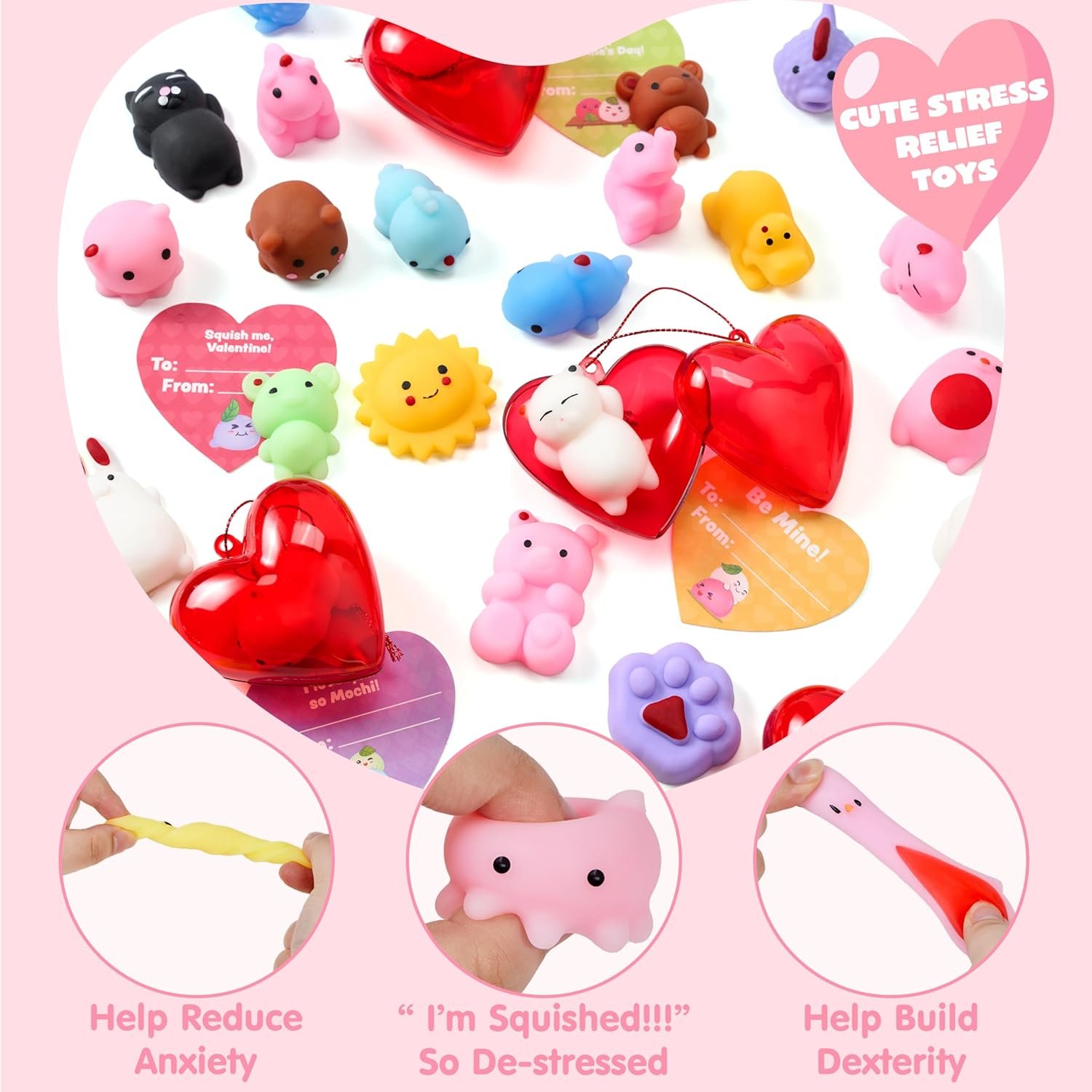 FUN VALENTINE: Each mochi squishy toy is cute and uniquely designed, pre-filled into translucent plastic red heart shells. Our set also comes with thick paper heart shape valentine’s cards for kids. A fun way to encourage social skill development and a chance to express gratitude to family, friends, and classmates