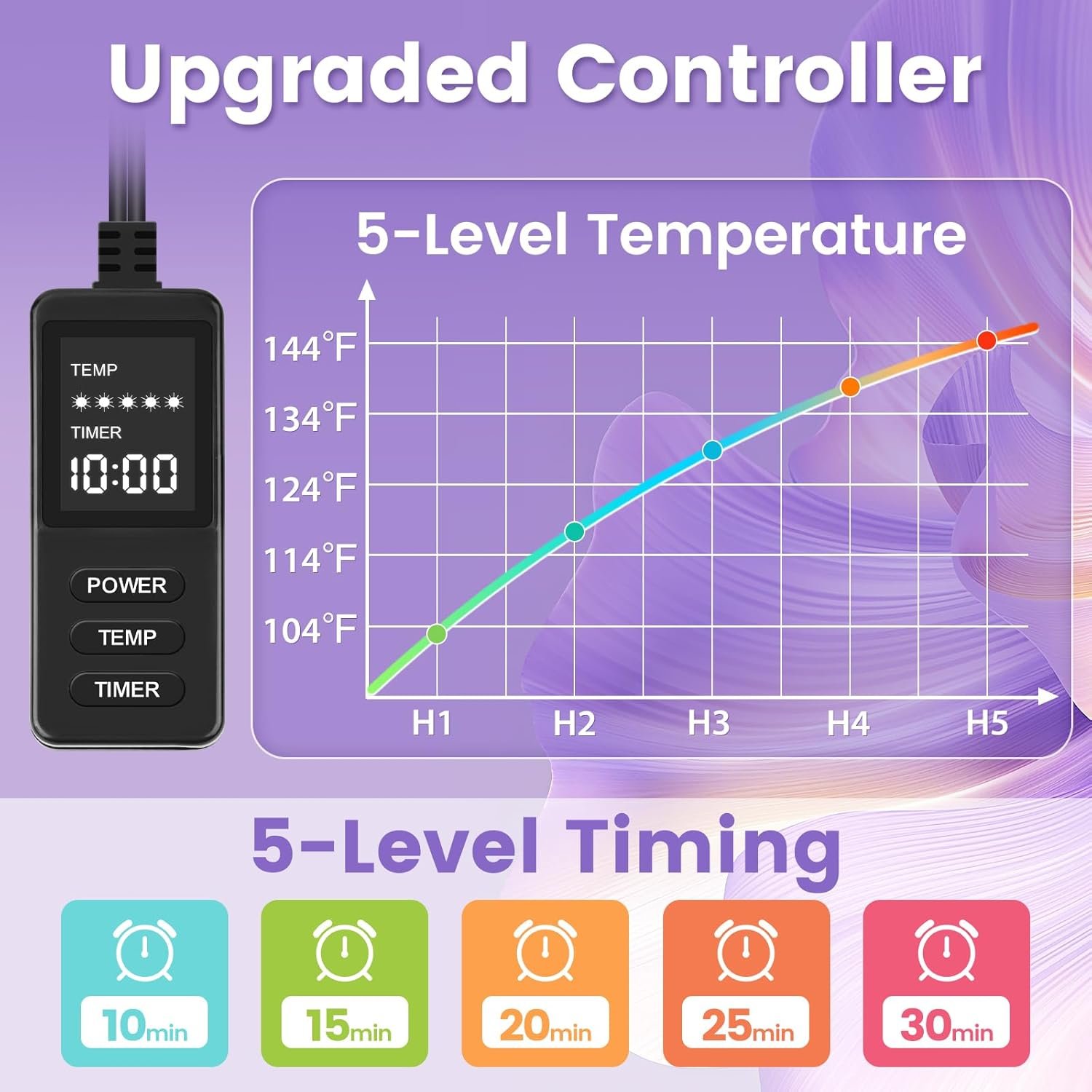 ✿ 5 Temperature Levels & 5 Timer Levels – Choose your perfect warmth (104°F to 144°F) and set your timer (10 to 30 minutes) to relax just the way you like it