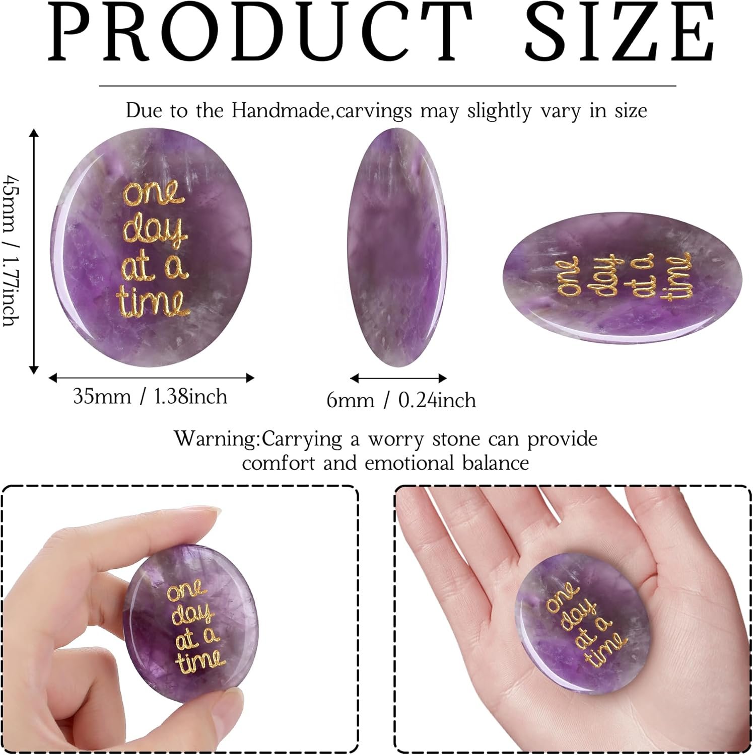 【Relaxing Sobriety Stone】When you are anxious, stressed daily or overactive in your thinking, place the Worry Stone in the palm of your hand, rub the smooth surface, and trace the carved words”one day at a time”, each letter can help you keep your feet on the ground, focus on the present moment, and feel its grounding and relaxing effect.